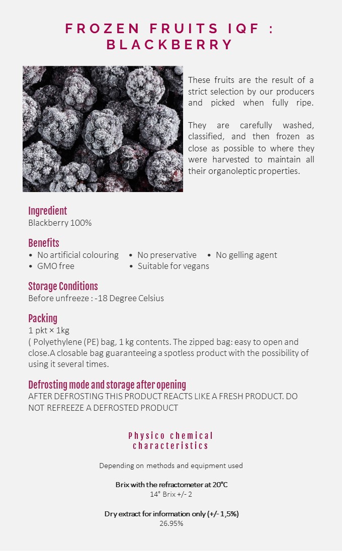 BOIRON, Frozen Whole Fruit & Pieces - IQF Blackberry, 1kg
