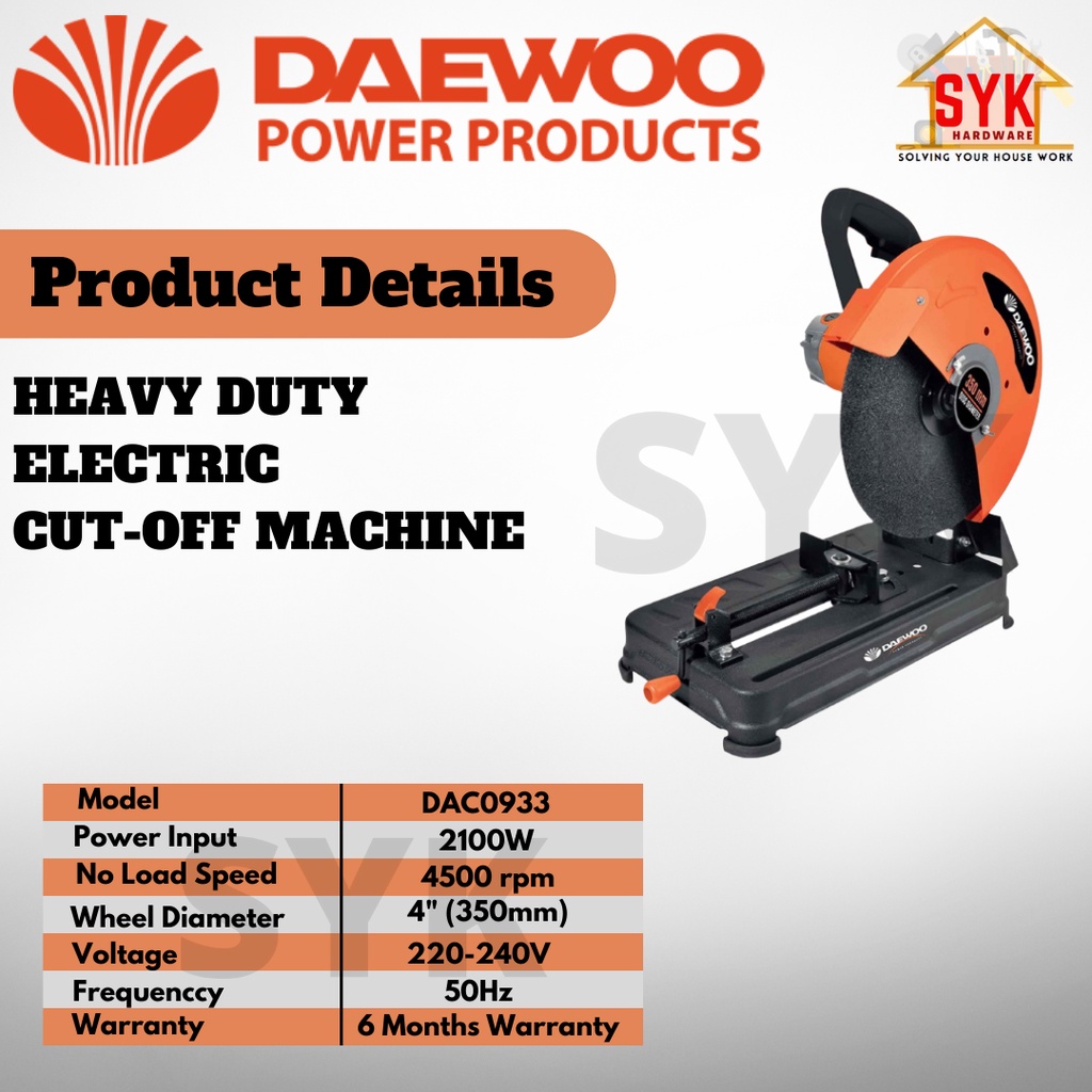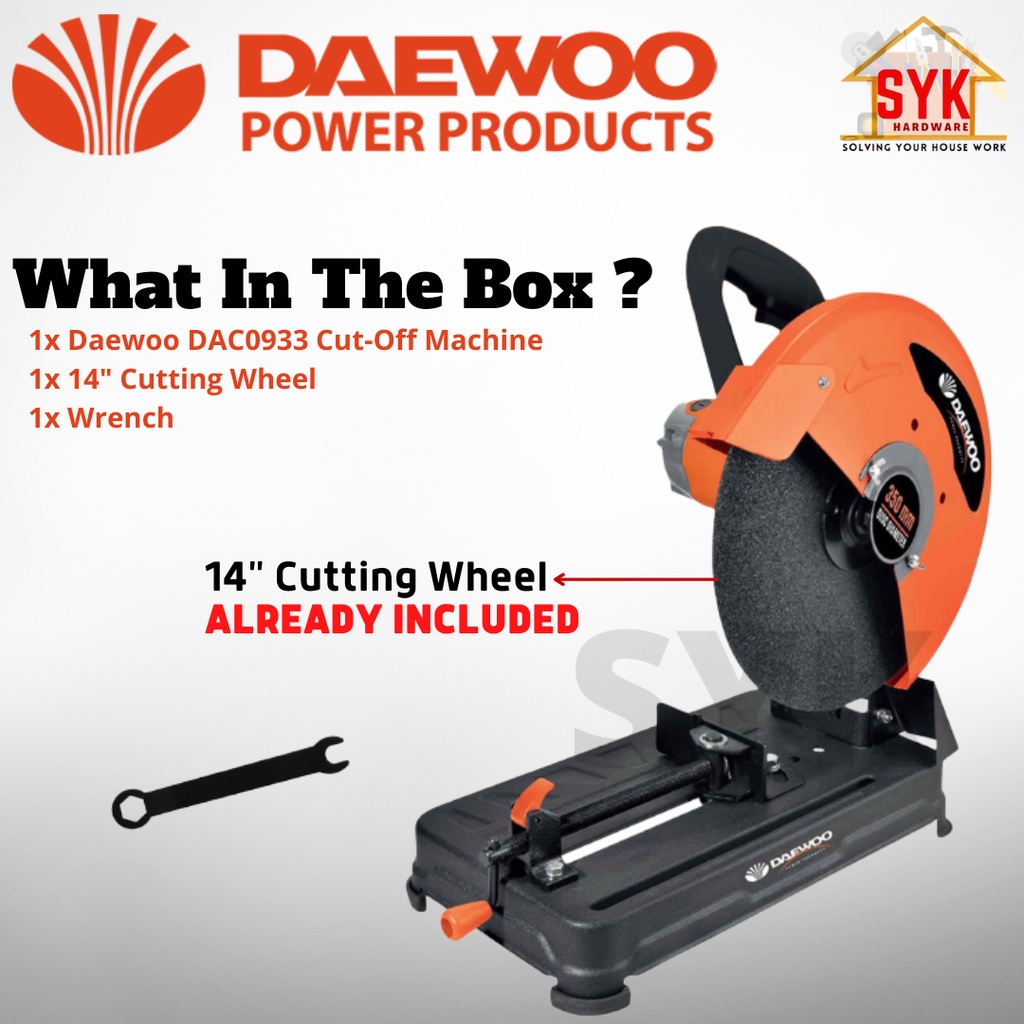 Product Specification About Daewoo DAC0933 Heavy Duty Electric Cut-Off Machine Wood Metal Aluminium Cutting Machine Mesin Potong Kayu Besi 2100W