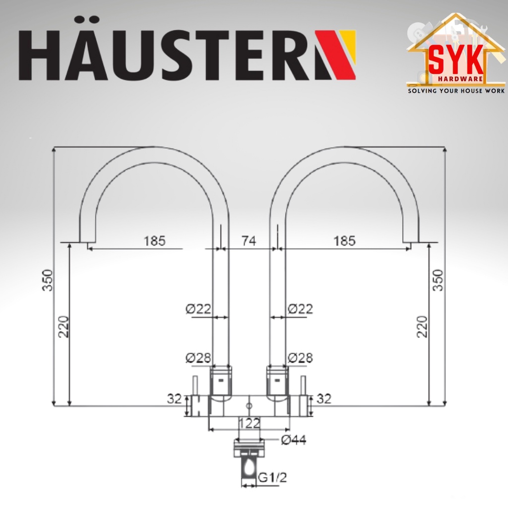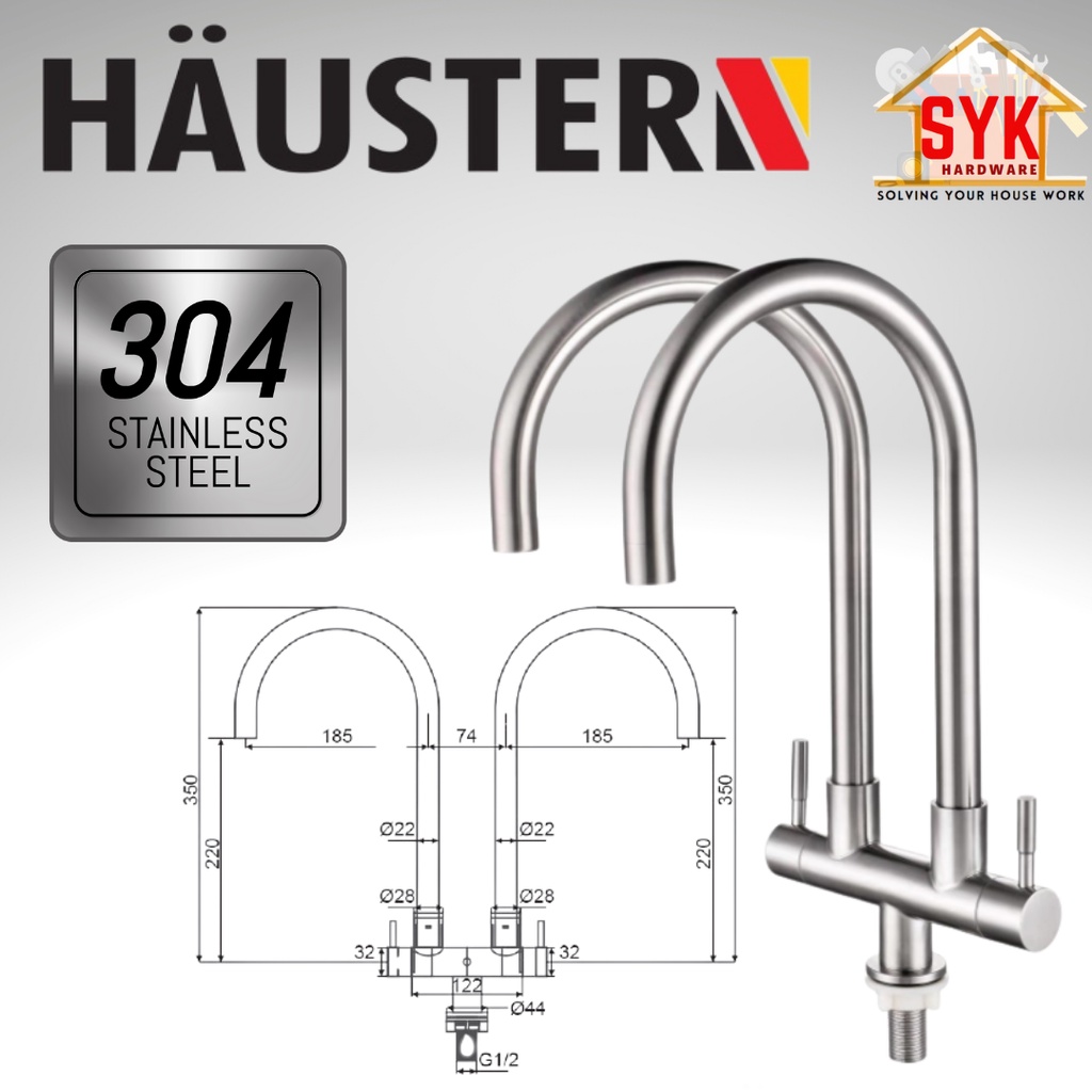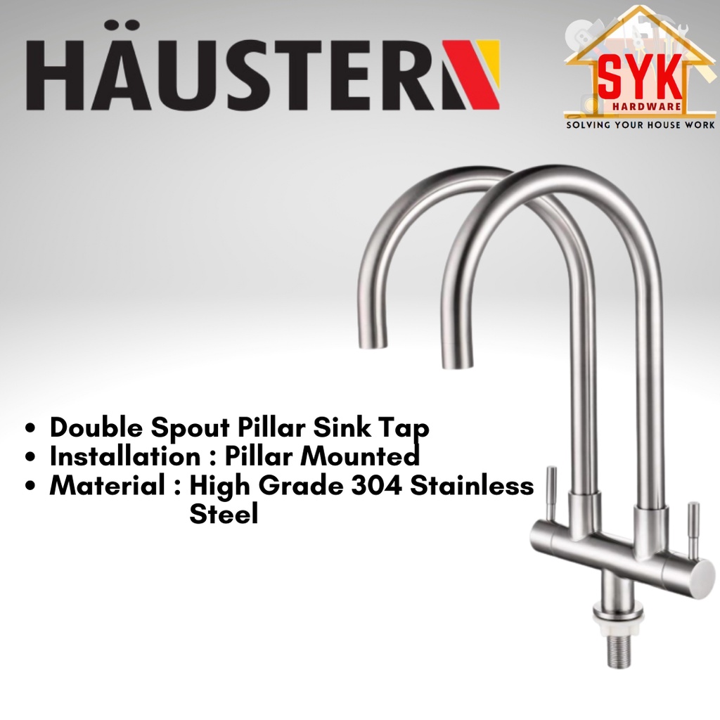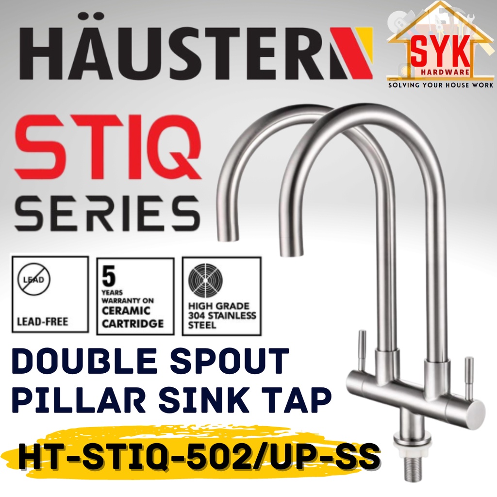 Product Specification About HAUSTERN HT-STIQ-502/UP-SS Double Spout Pillar Sink Tap ( Pillar-Mounted Sink Tap)
