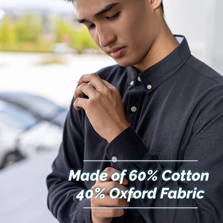 Material : 60% Cotton 40% Oxford Fabric — A blend of fabrics that offers a balance of comfort, durability, performance, softness, strength, and wrinkle resistance.