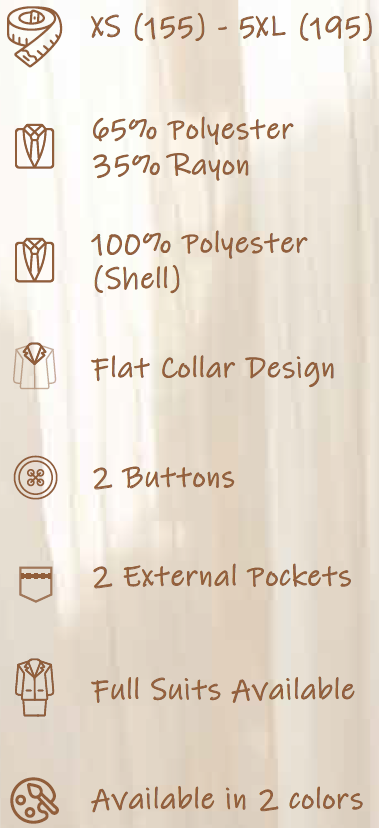 65% Polyester + 35% Rayon + 100% Polyester ( Shell )