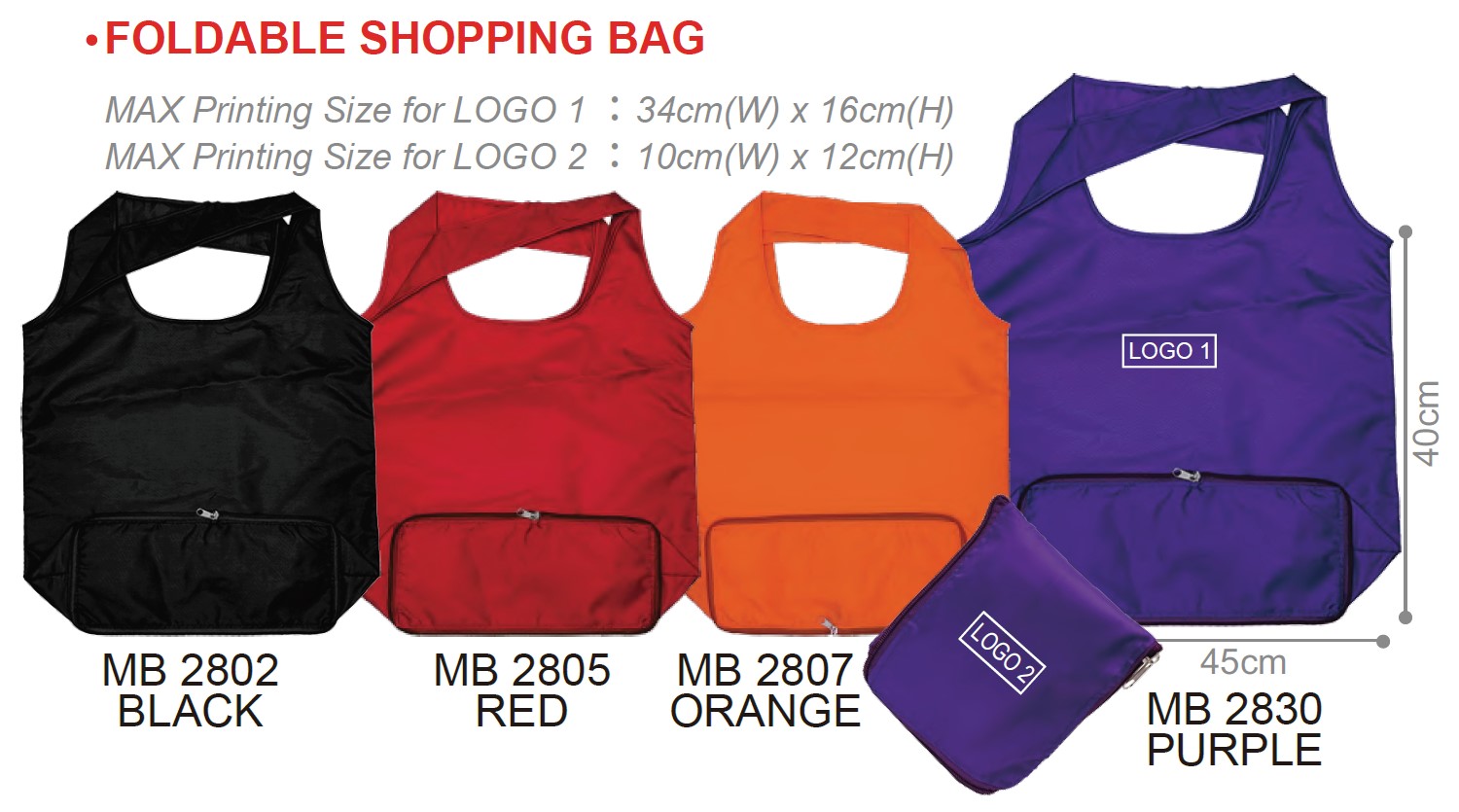 Dimension: 45cm (L) x 40cm (H) x (25cm handle)