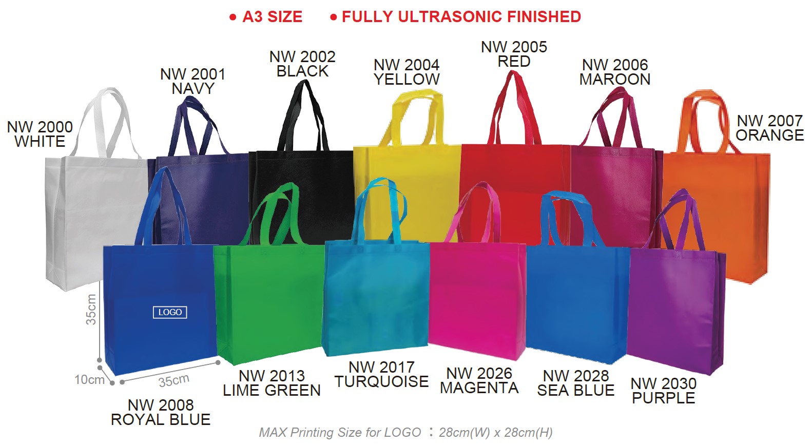 Material: Non-Woven (A3 Sized & Ultrasonic) — Offers lightweight durability, eco-friendly reusability, breathability, water resistance, and excellent strength for carrying items efficiently.