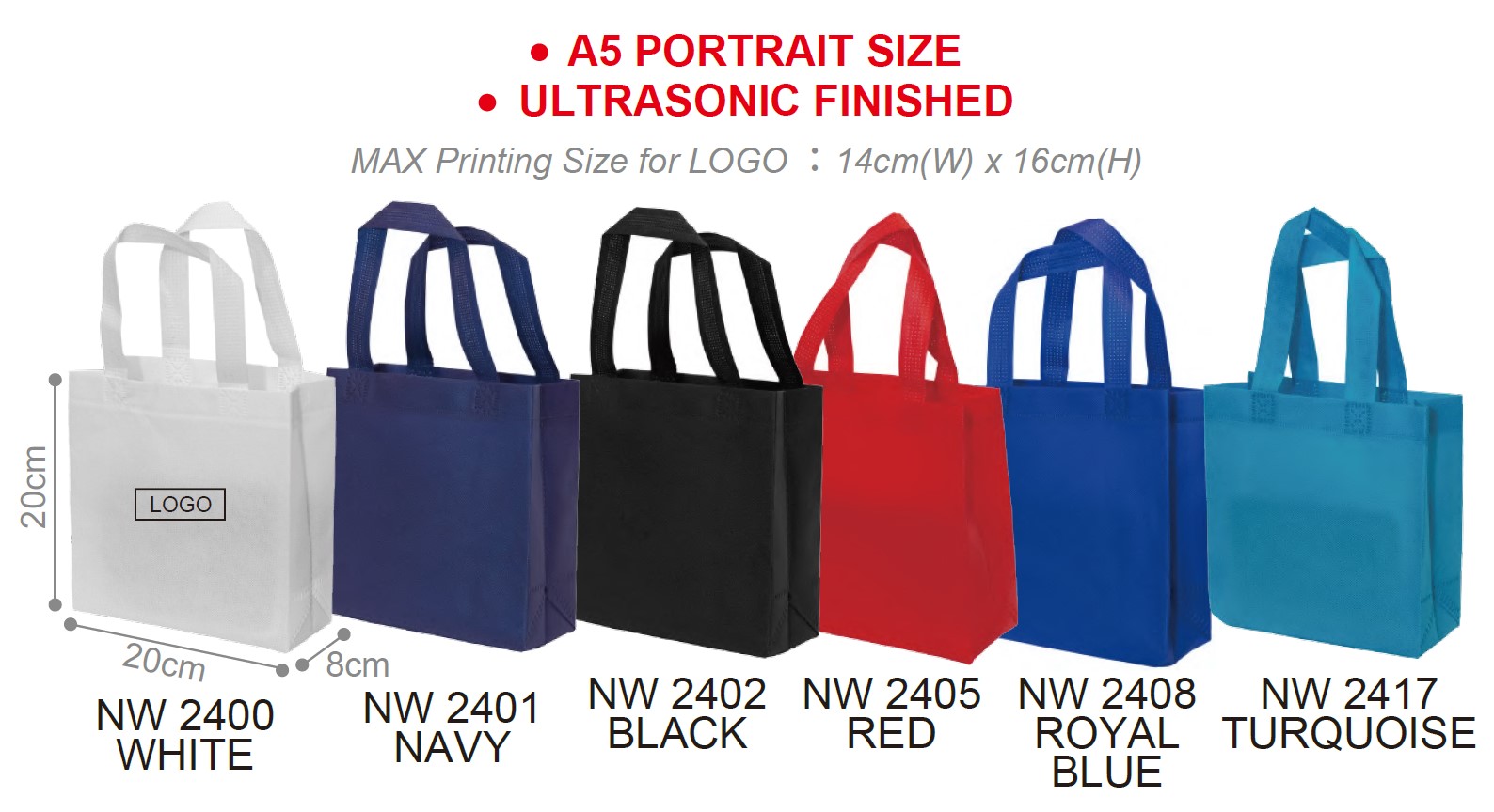 Material: Non-Woven (A5 Sized) (75gsm) — Offers lightweight durability, eco-friendly reusability, breathability, water resistance, and excellent strength for carrying items efficiently.
