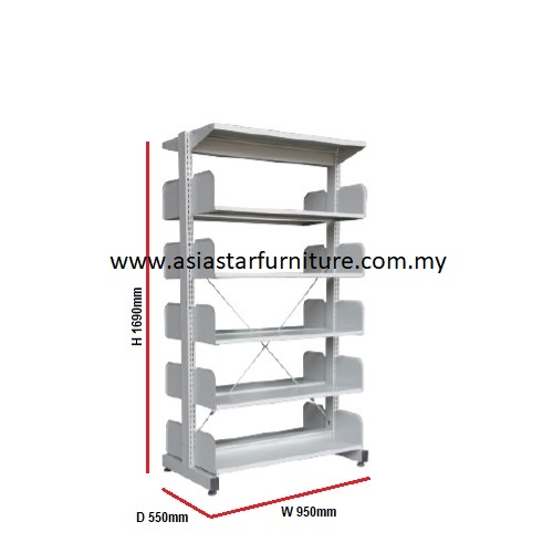 RAK BUKU BESI BERGANDA DENGAN 5 TINGKAT TANPA PAPAN BESI TEPI SAIZ