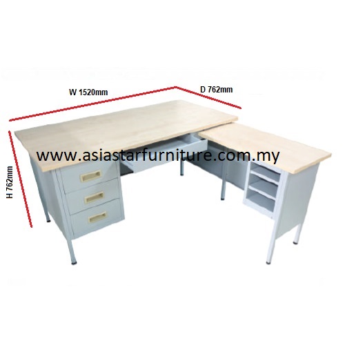 5 KAKI MEJA BESI PAPAN TOP PEJABAT DENGAN LACI DAN MEJA SISI SAIZ