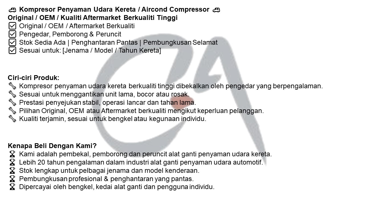 Car Air Cond Parts Supplier Selangor, Car Air Cond Specialist KL, Car Air Cond Components Supply Puchong, Malaysia ~ Cool Auto Aircond Sdn. Bhd.