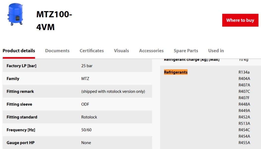 MANEUROP 2-3/4HP MTZ32JF5AVE (220-240V1PH50HZ) (R407CR134AR404AR507) COMPRESSOR
