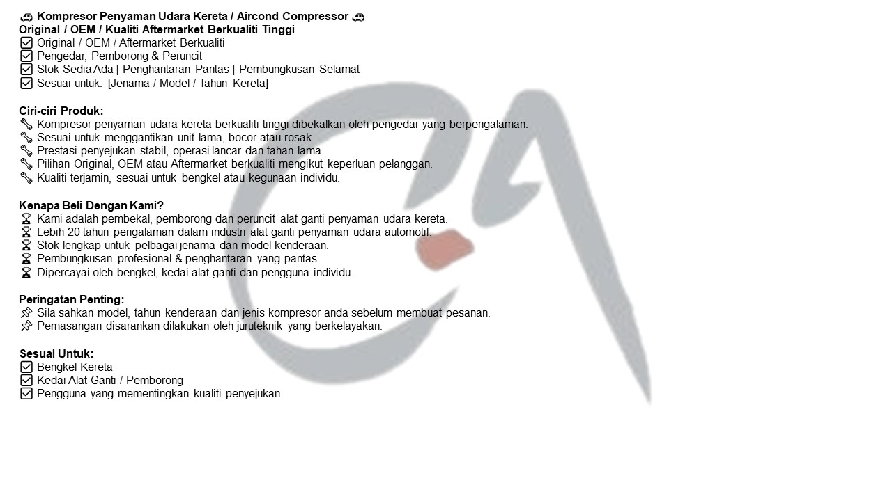 Car Air Cond Parts Supplier Selangor, Car Air Cond Specialist KL, Car Air Cond Components Supply Puchong, Malaysia ~ Cool Auto Aircond Sdn. Bhd.