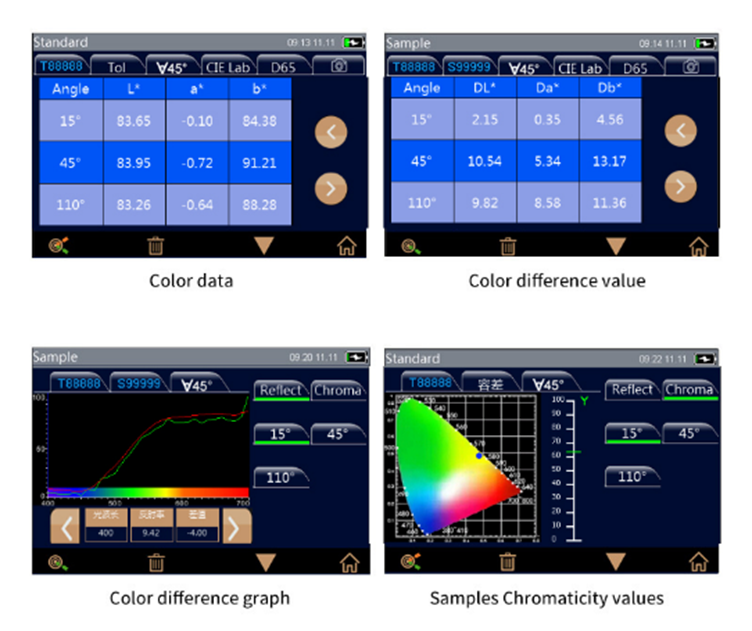 45° Receiver: 45as15°,45as45°,45as110° Conform to the standards:ASTM D 2244,E 308,E 1164,E 2194, E2539,DIN 5033,5036,6174,6175-1,6175-2;ISO 7724, 11664-4 SAE J 1545 |