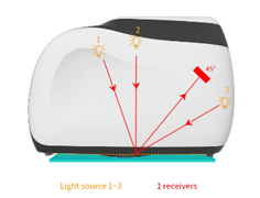 Measurement Geometry | 3 measurement angles (3 illumination sources, 1 receivers) |