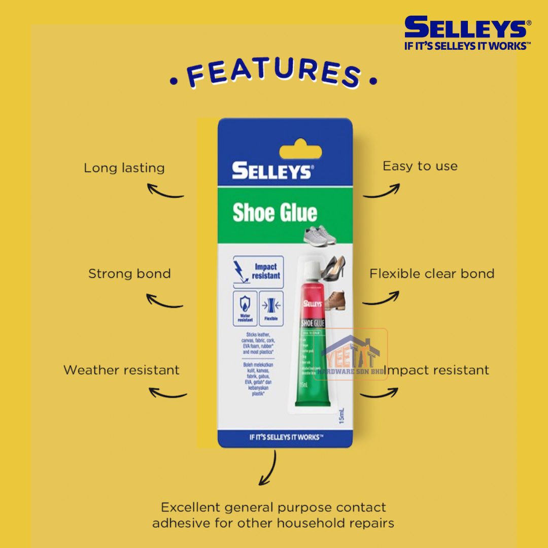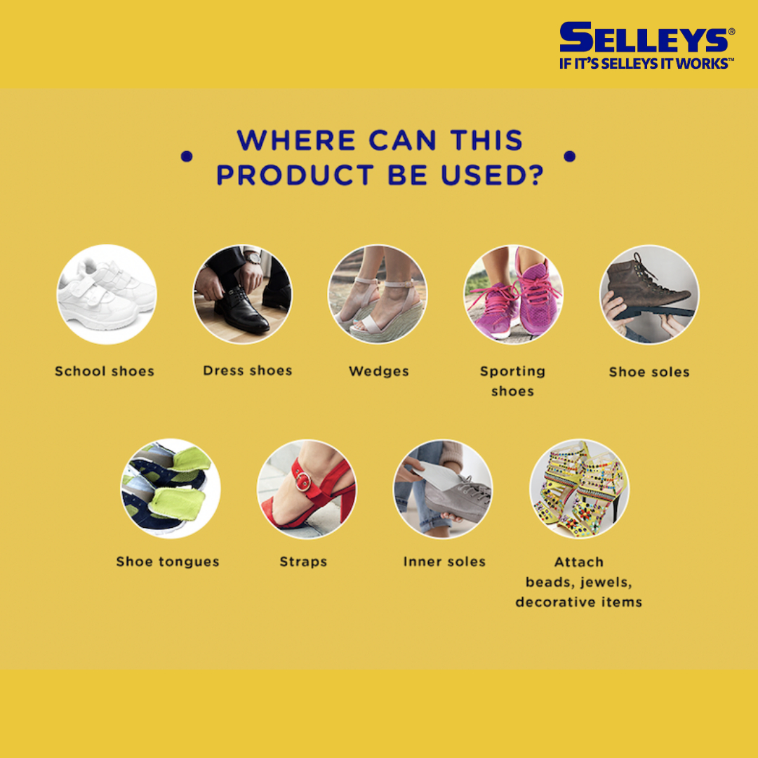 Selleys Shoe Glue is a strong, flexible, weather and impact resistant adhesive that is ideal for most shoe repairs.