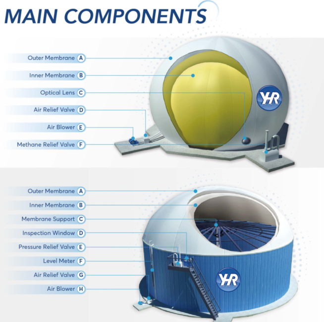 Manufactured to DIN 4102 B1 standards, our membranes offer excellent flame resistance, antifungal and UV-resistant properties, and superior impermeability to CH4 gas. This innovative design not only ensures secure gas containment and environmental protection but also offers the lowest investment costs compared to other storage methods. The YHR Biogas Holder stands out as an economical and reliable choice for biogas projects, providing both long term cost savings and enhanced performance.
