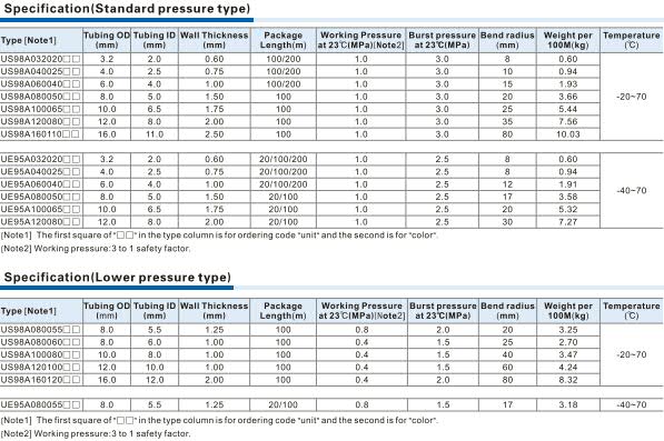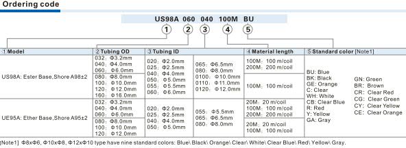 AIRTAC US98A, UE95A Series Polyurethane Tubing