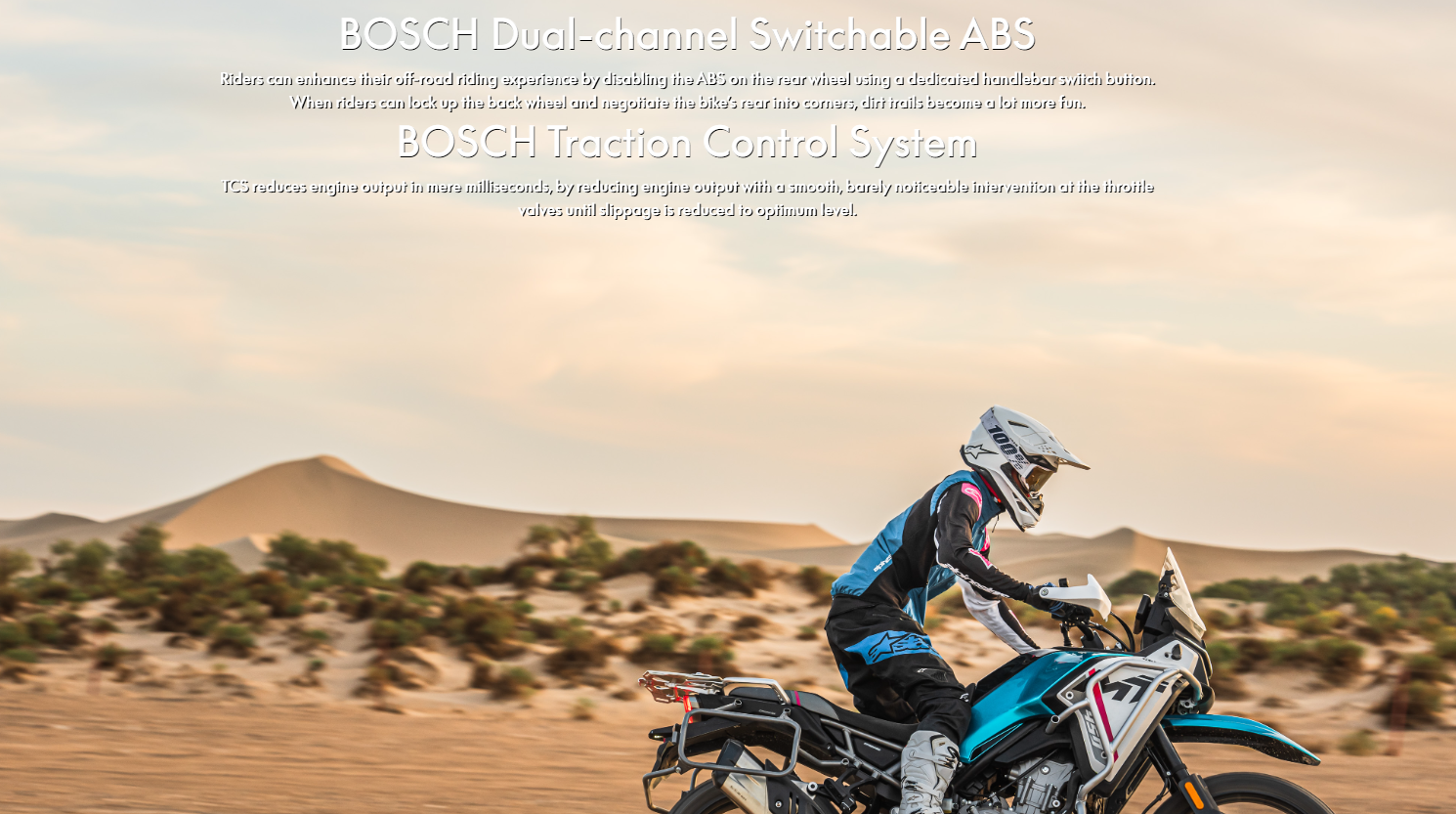 Front Brake : 320mm single disc, four-piston caliper, J.Juan