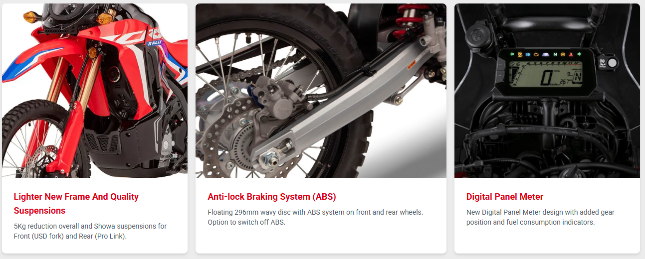 Front Brakes | : | 296 mm Floating Wave Disc with 2-piston Calliper, ABS |