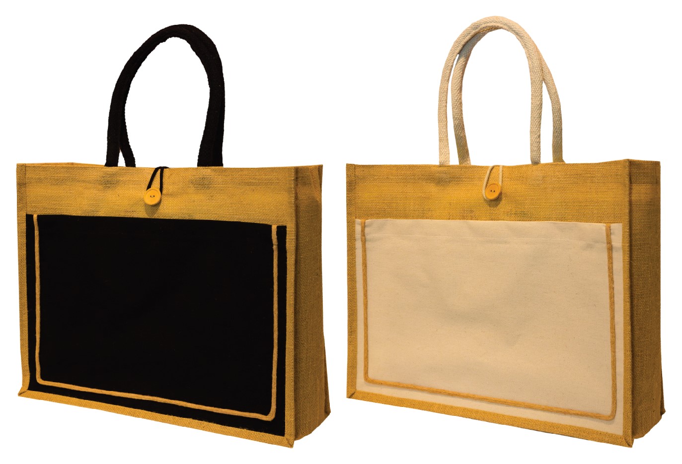 Material: Laminated Jute / Canvas — Offers eco-friendly durability, reusability, water resistance, and enhanced sturdy structure with natural style.