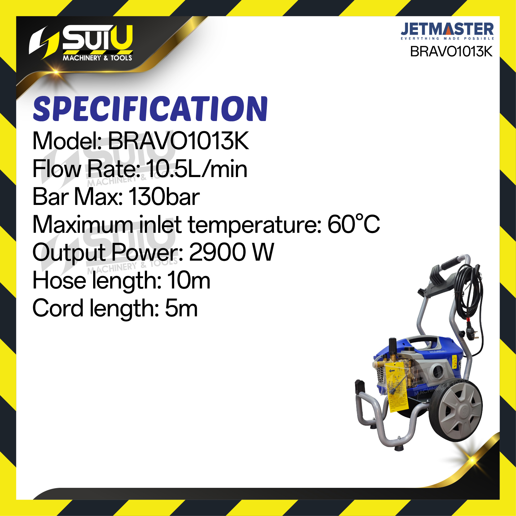JETMASTER BRAVO1013K 130Bar High Pressure Cleaner / Pencuci Tekanan Tinggi 2900W