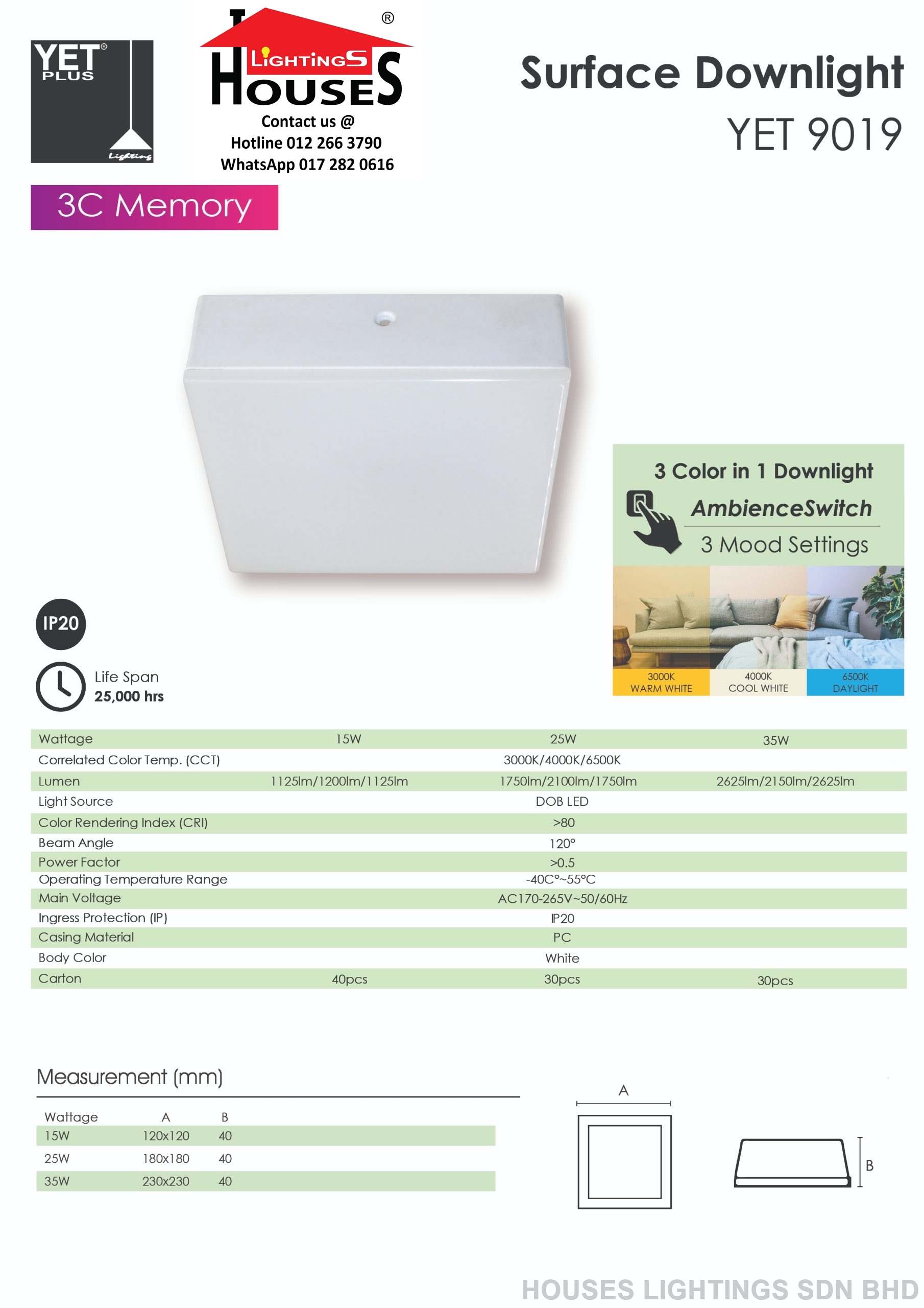 YET 9019 15W 25W 35W WH SQ LED-3C (MEMORY)