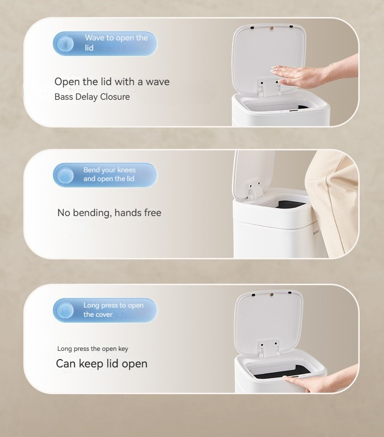 Made from high-quality metallic materials, this automatic waste bin is not only durable and long-lasting, but also adds a touch of elegance to any room. The sleek design and automatic lid make it easy to dispose of waste without ever having to touch the bin, keeping your hands clean and germ-free.