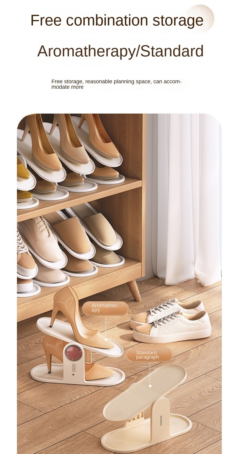 Introducing the ECOCO Adjustable Double-layer Shoe Organizer with Aromatic Foldable Shoe Rack, the perfect solution for organizing your high heels in style!
