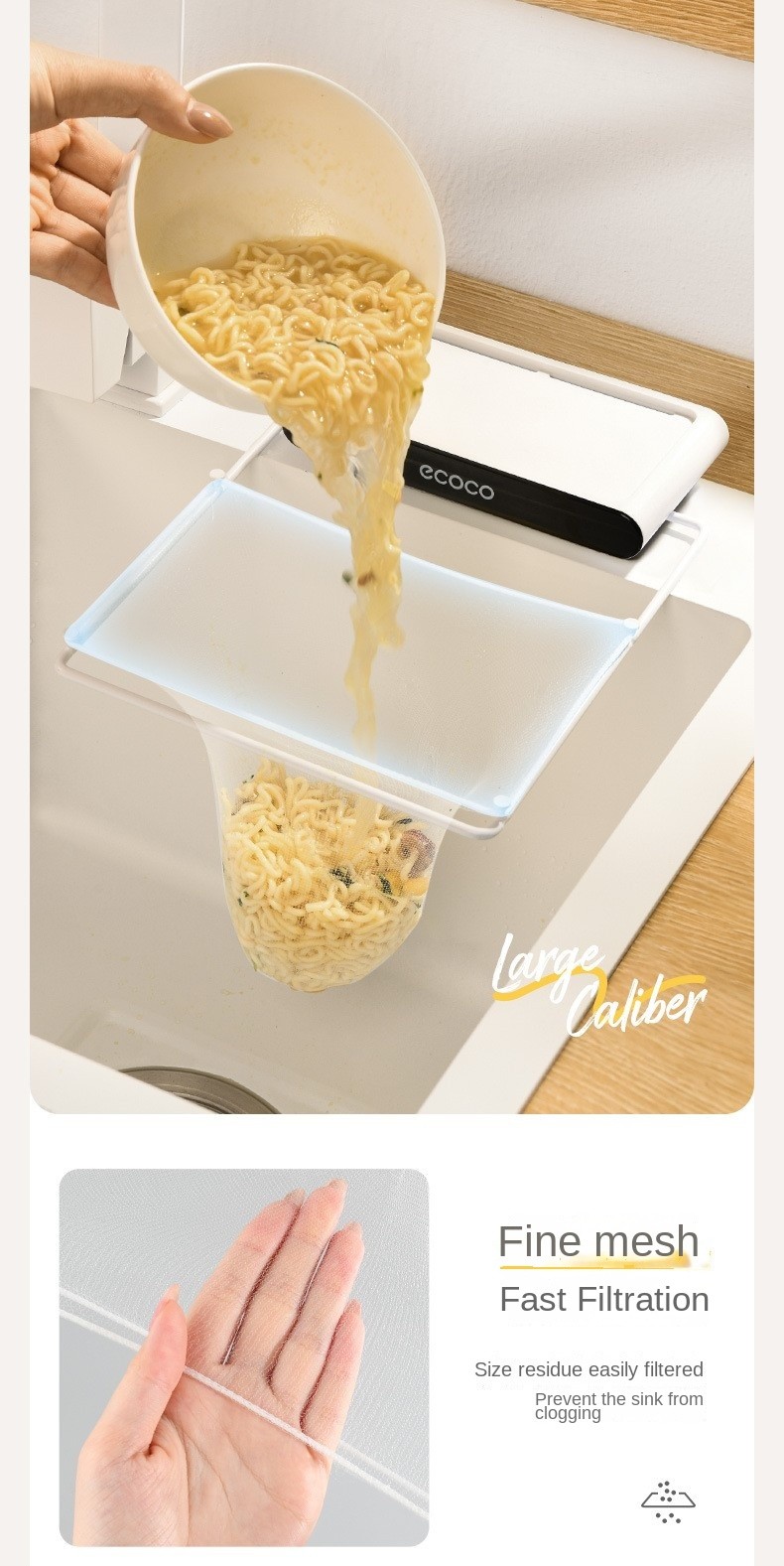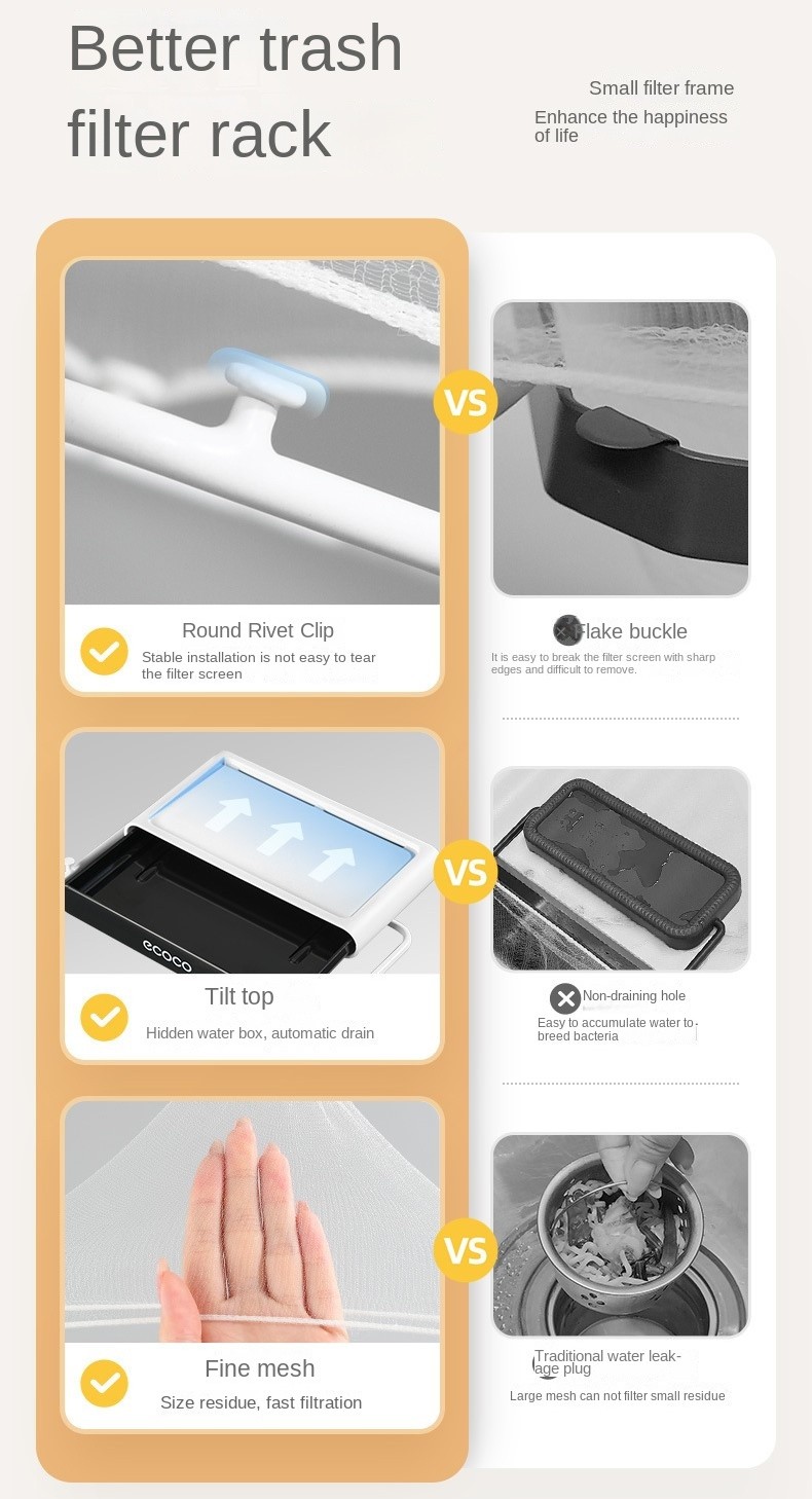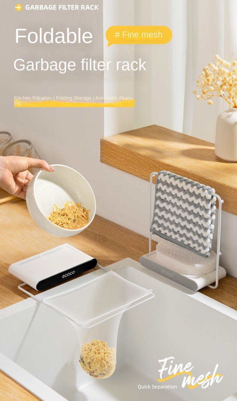Introducing the ECOCO Foldable Kitchen Sink Drain Rack, the ultimate solution for keeping your kitchen clean and organized! This innovative rack comes with 100 disposable fine mesh filter nets, making it easy to dispose of kitchen waste and residue without any mess.