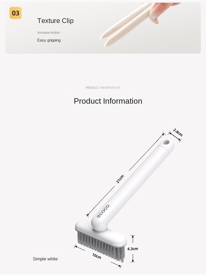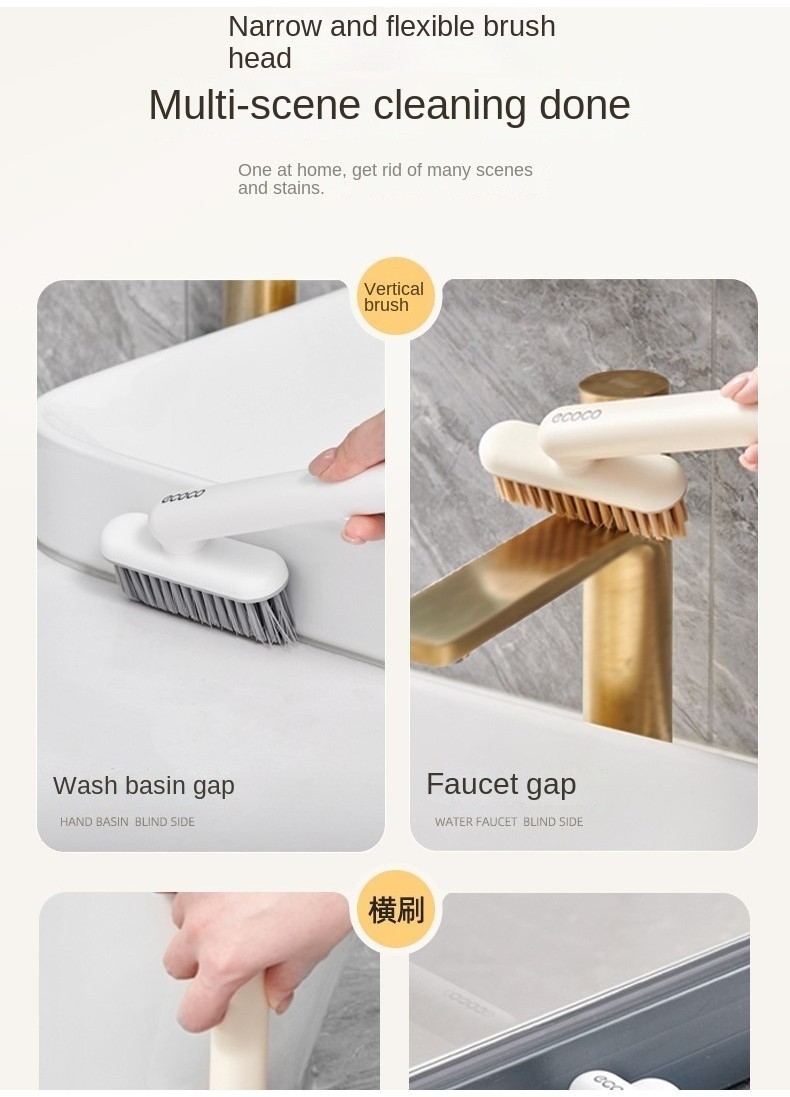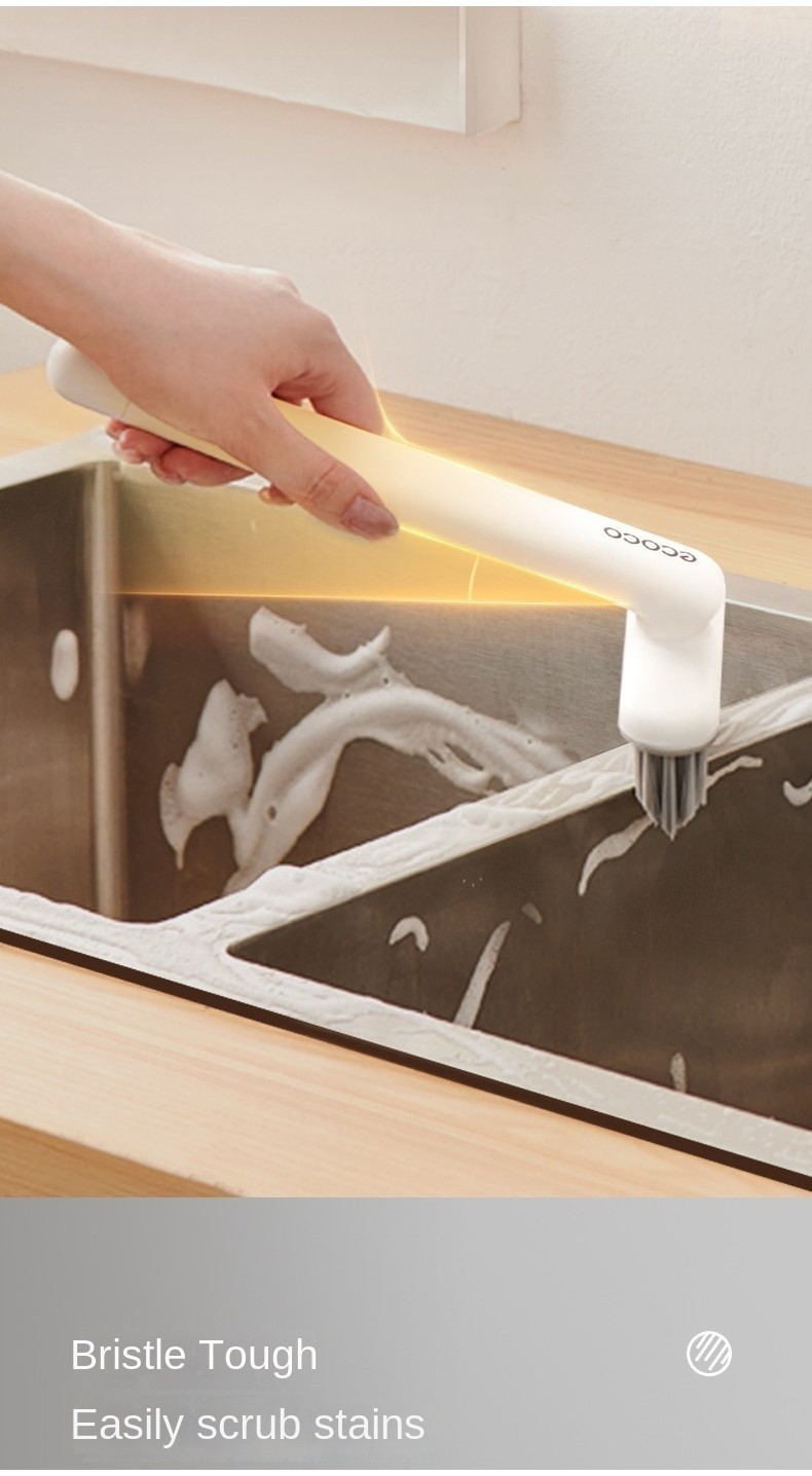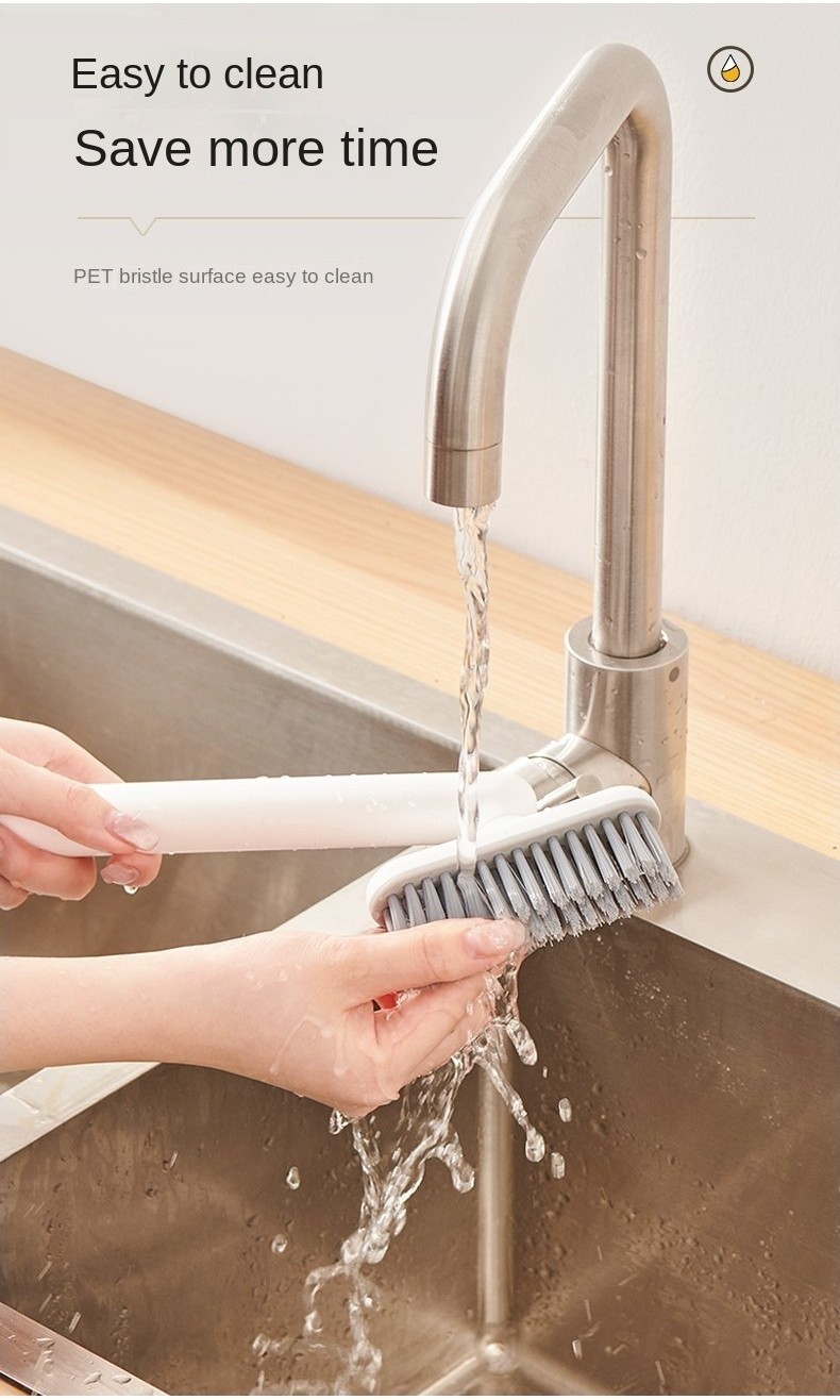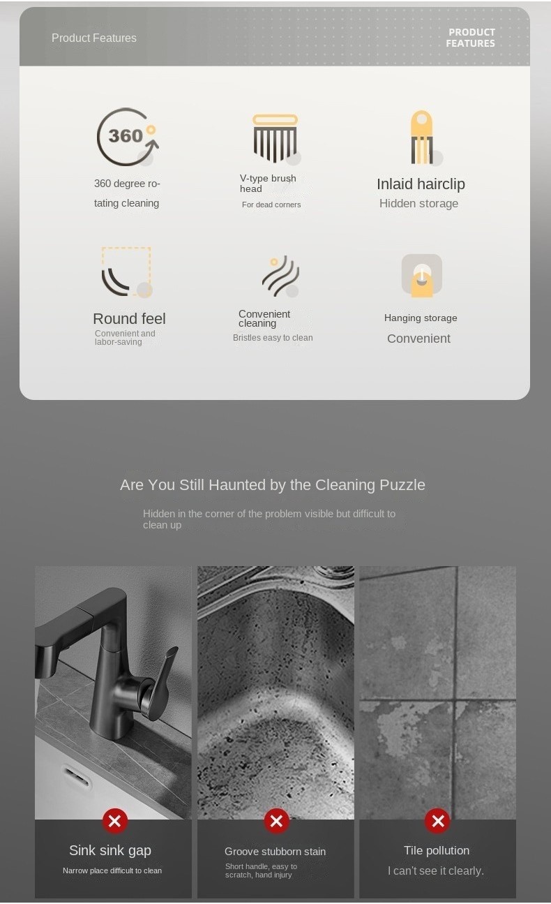 2. Design: The brush head adopts a 360° rotating design to thoroughly clean corners such as the edge of the sink and window seams in 360° without blind spots.