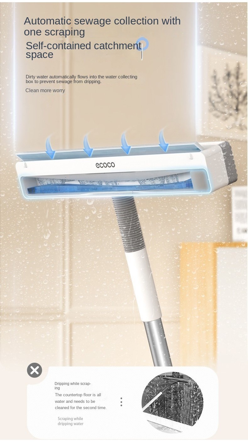 Ecoco Multi-Purpose Glass Wiper, Integrated Smart Waste Water Brush With New Generation Wiper, Stainless Steel Handle Rotates 90 Degrees