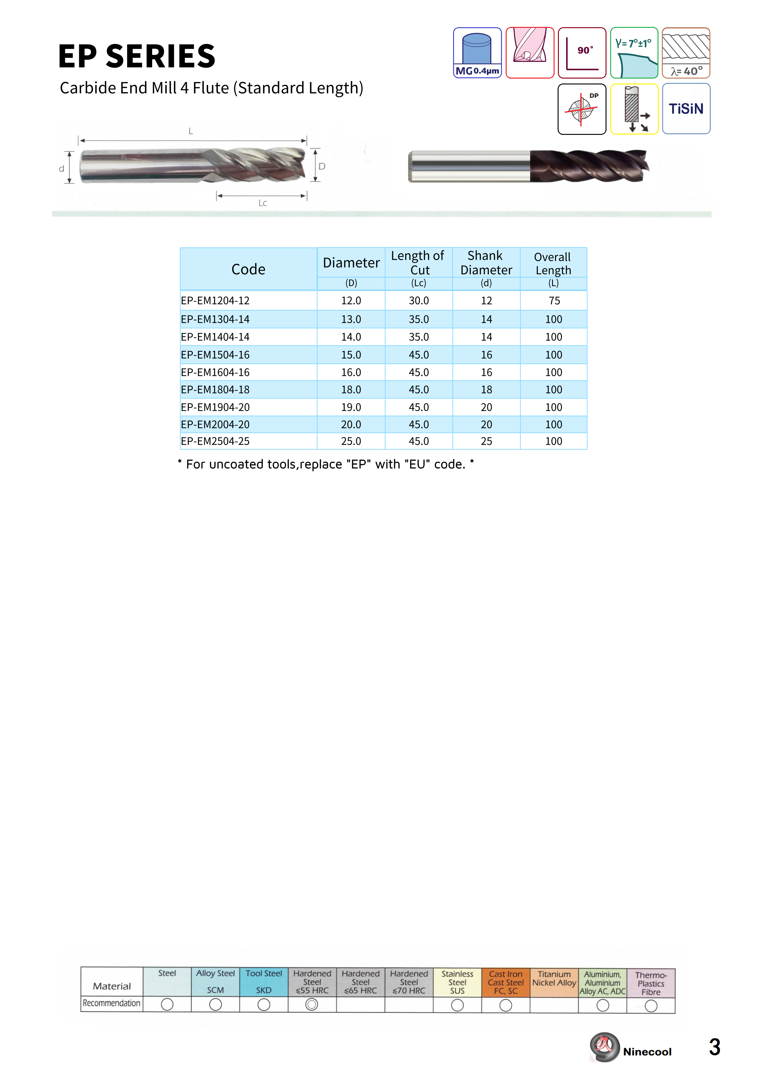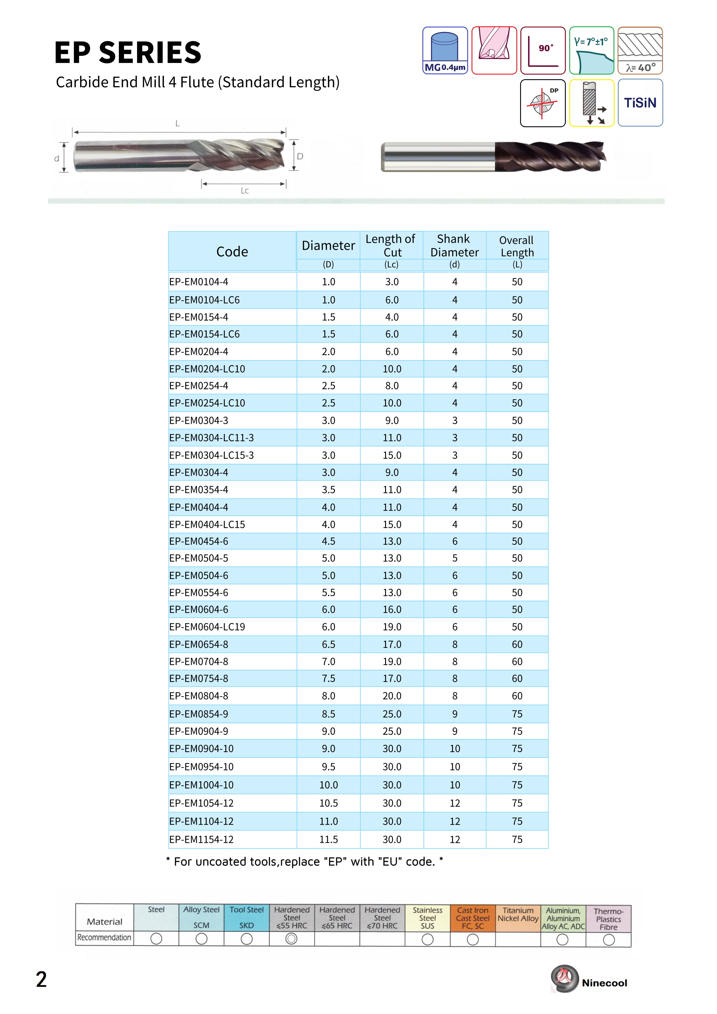 Standard Length Design – Ideal for general-purpose milling with improved rigidity