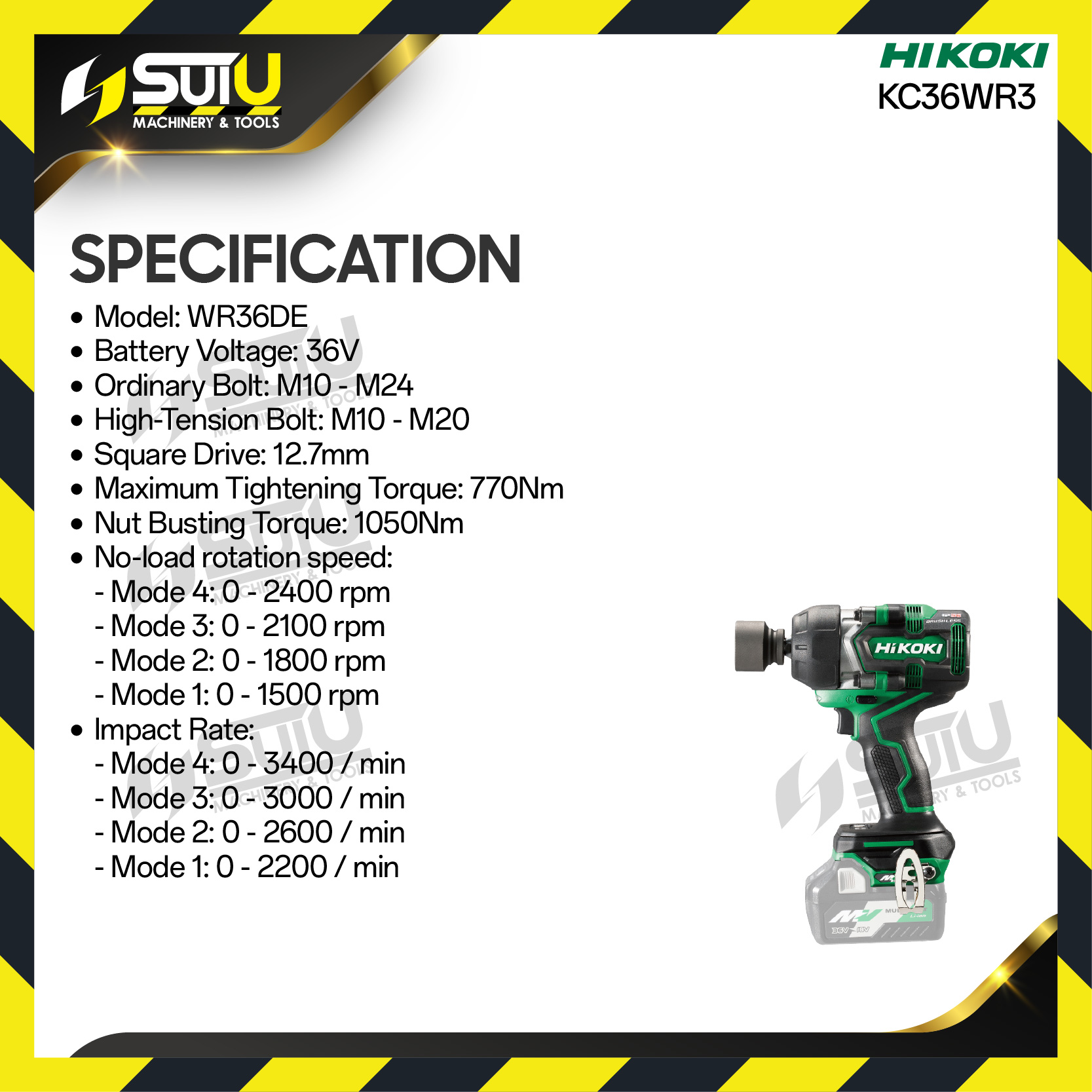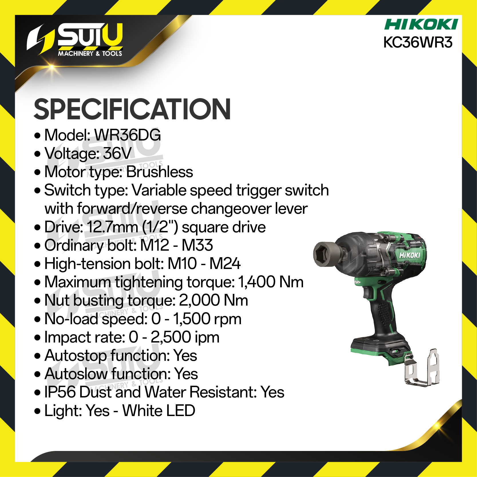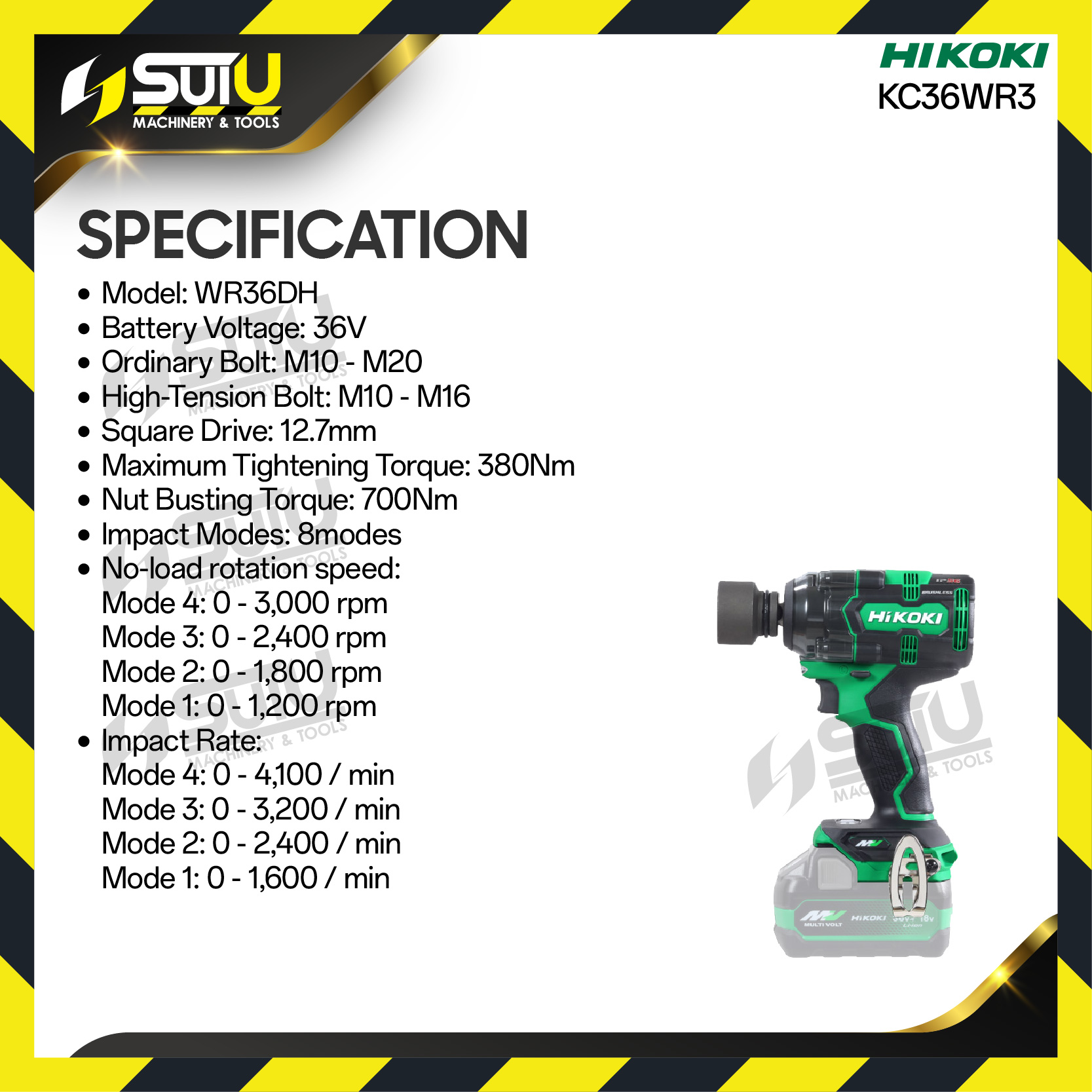 - 1 x WR36DH Impact Wrench 700NM (SOLO / MACHINE ONLY)
