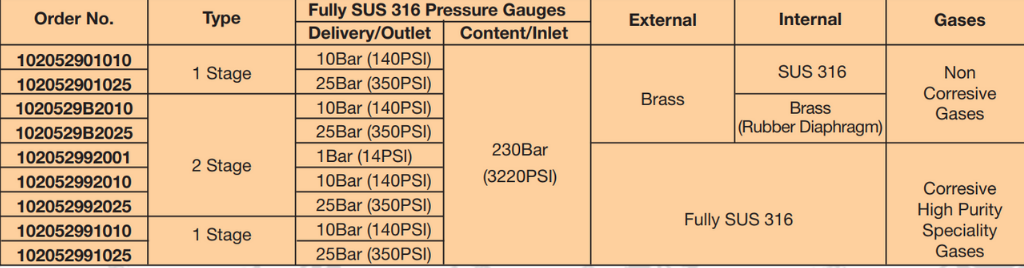Stainless Steel Gases Regulator - Single & Double Stage