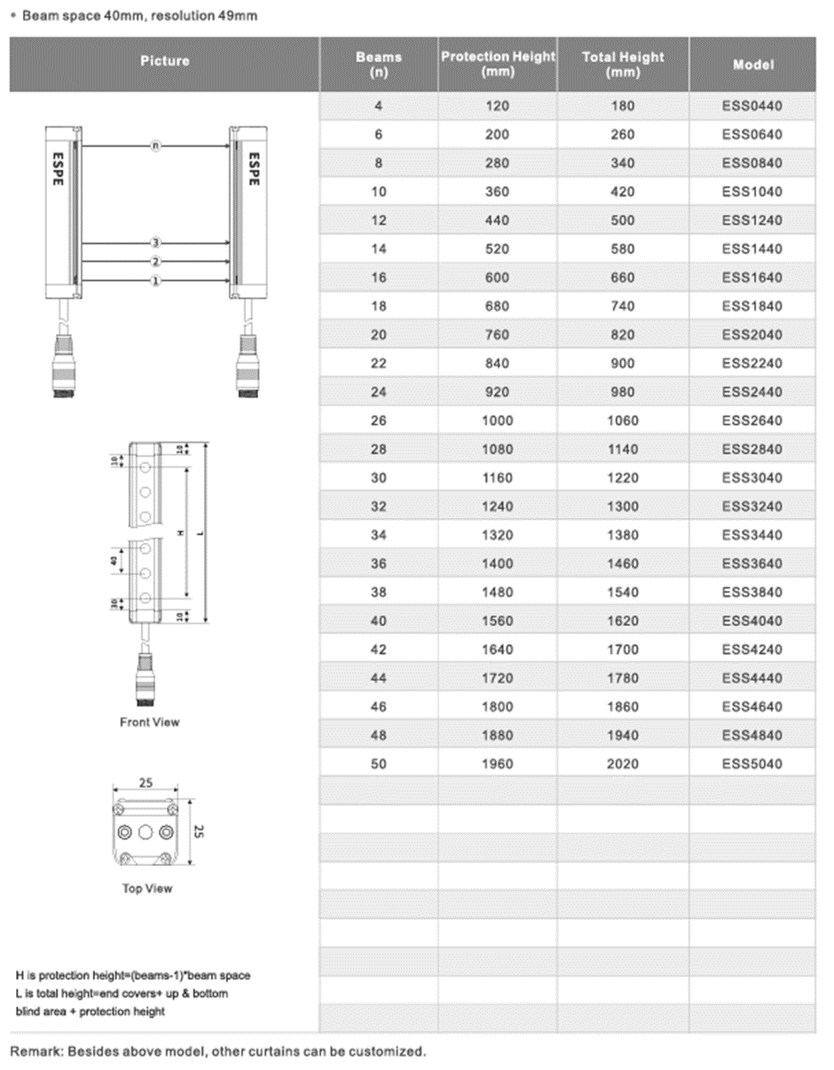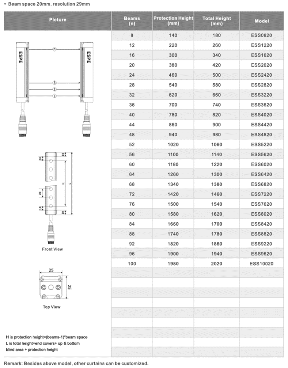 To meet requirement of customers from different industry, ESPE designed Type 4 curtain, economical curtain, ultra-compact curtain, no dead zone curtain etc.