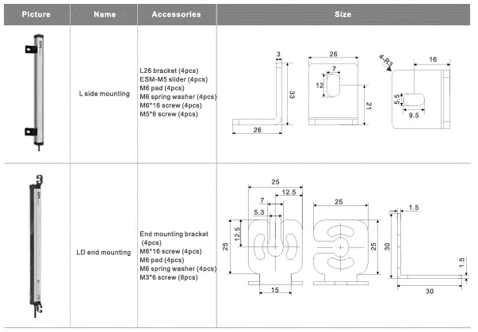 ESS series safety light curtain is optical-syn and 25mm*25mm compact size; Up to 6m sensing distance; EU Type 2 and redundancy MCU design, self-diagnosis & cross-diagnosis.