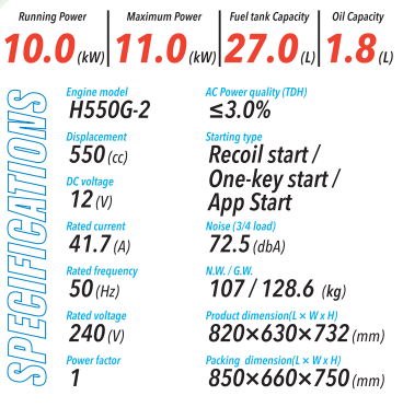 LONCIN GR12500IS-3 Gasoline Inverter Generator Single Cylinder 4-Stroke 10kW 550cc 240v 60Hz U002