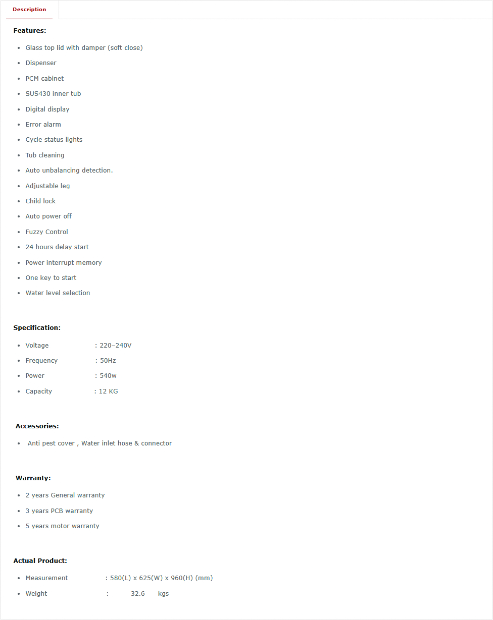 - Capacity : 12 KG