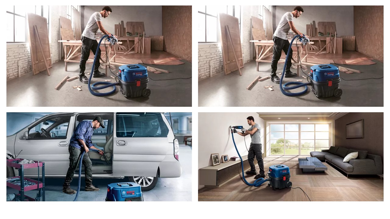 Dust-free work space 99.95% of fine dust (>0.3 micron) are filtered while vacuuming with H13 HEPA filter!