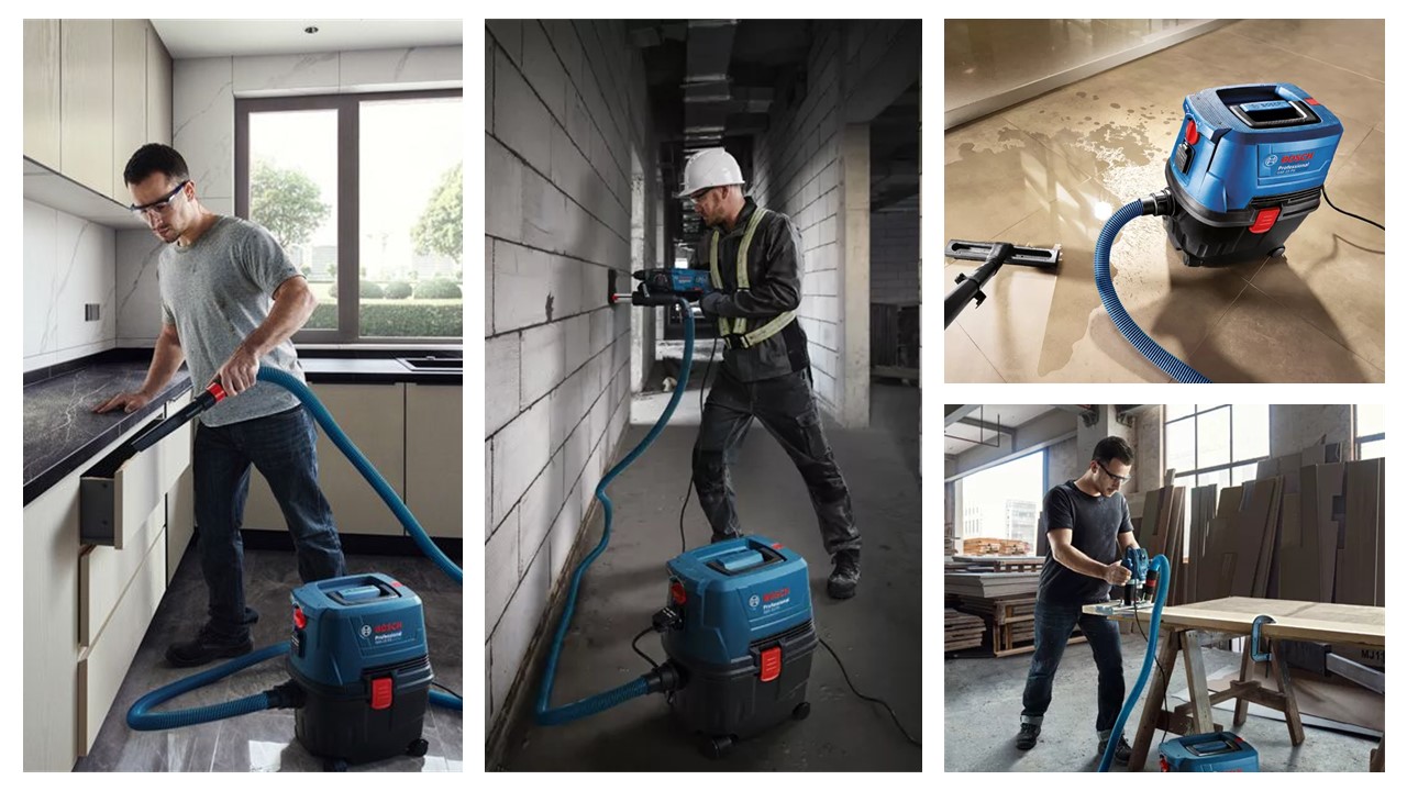 -Innovative dust bag holding system: both universal house-hold and professional dust bag compatible.