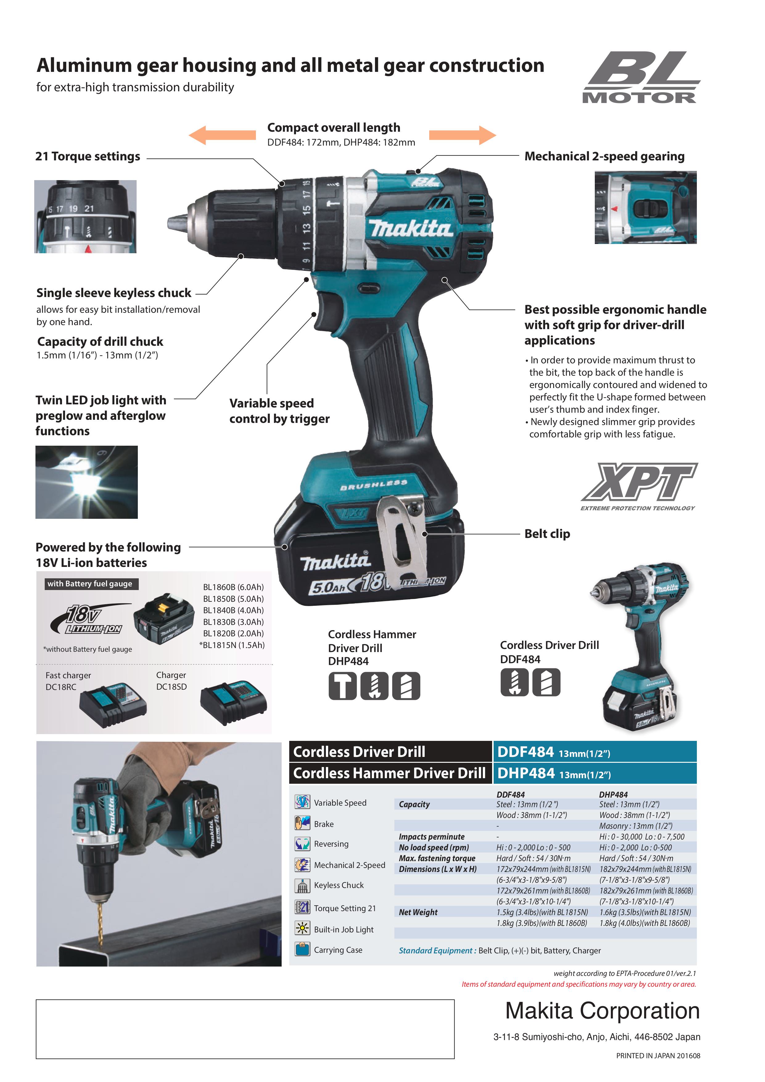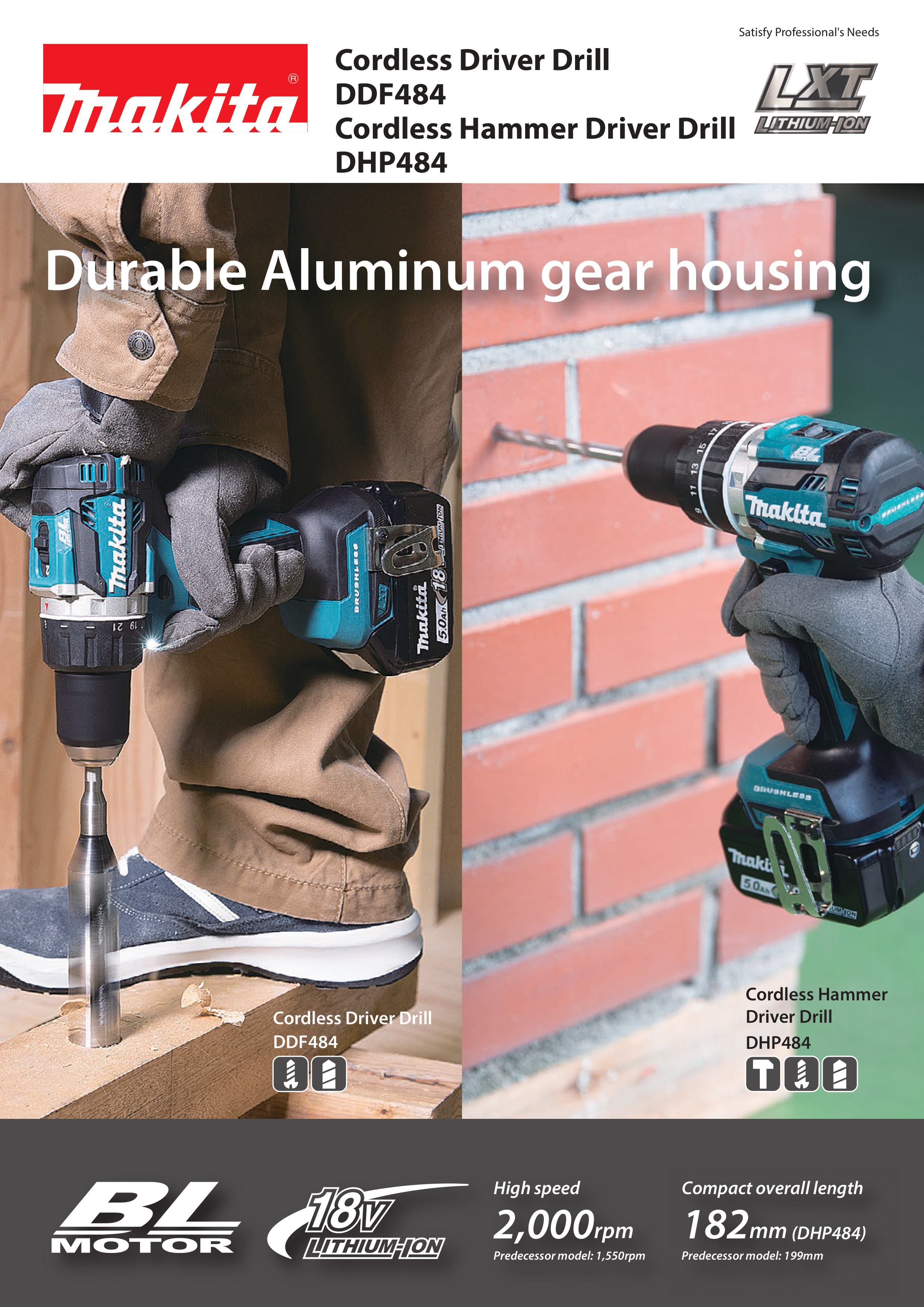 MAKITA DHP484RME/Z 13 mm (1/2") 18V Cordless Hammer Driver Drill Solo / Set