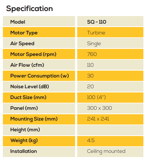 AireGard SQ-110 world’s quietest noise 20dB Ventilator Fan