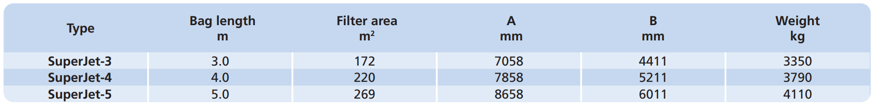 - The SuperJet filter is supplied with scraper bottom with discharge to a single B-500 rotary valve, but can be increased to two discharges, B-500 or B-750. Also available with discharge to JK-50S and JK-75S.