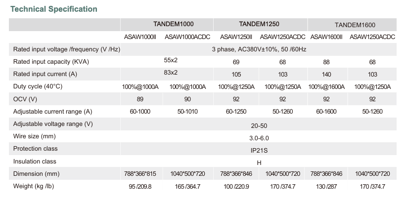 Tandem SAW system is the welding equipment with high efficien cy, high quality and low cost. It takes advantage of anterior wire's DC arc to provide deep penetration and high welding speed. Meanwhile, it also takes advantage of posterior wire's AC arc to improve the appearance, formation and surface finish of the welding seam. It is the best choice for welding medium and thick plates.
