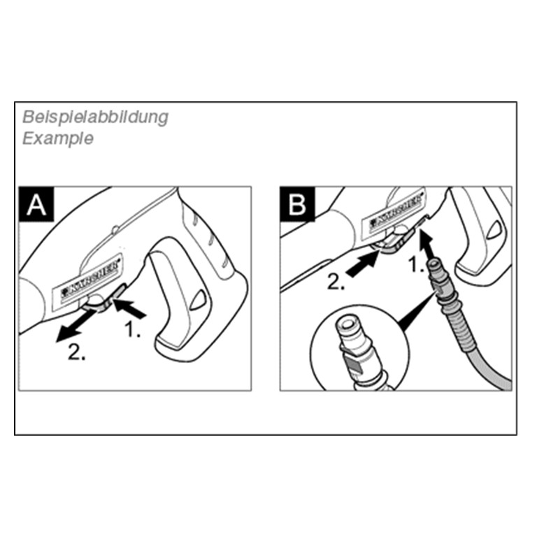 All Kärcher Home & Garden high-pressure washers of classes K 2 and K 3 with a high-pressure hose that has a Quick Connect plug connection (at that end which is connected to the trigger gun), for example: