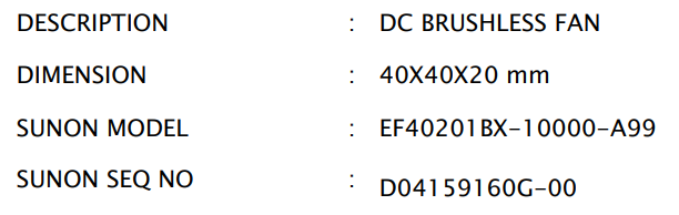 SUNON EF40201BX-10000-A99 40x40x20MM DC BRUSHLESS FAN
