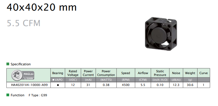 SUNON HA40201V4-10000-A99 40x40x20MM MAGLEV MOTOR FAN