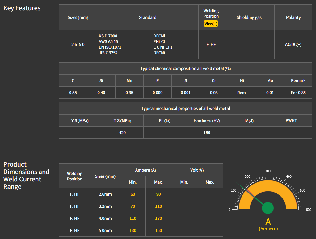 - EN: ISO 1071 : E C Ni-CI 1