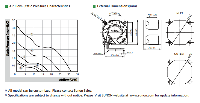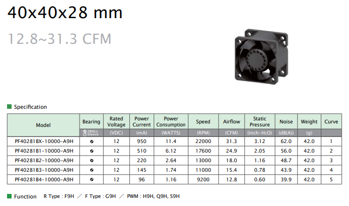 SUNON PF40281B4-10000-A9H 40x40x28MM DC BRUSHLESS FAN