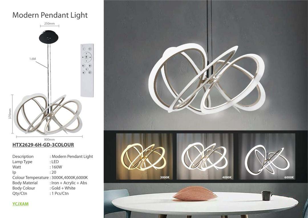 Modern Pendant Light (HTX2629-6H-GD-3COLOUR)