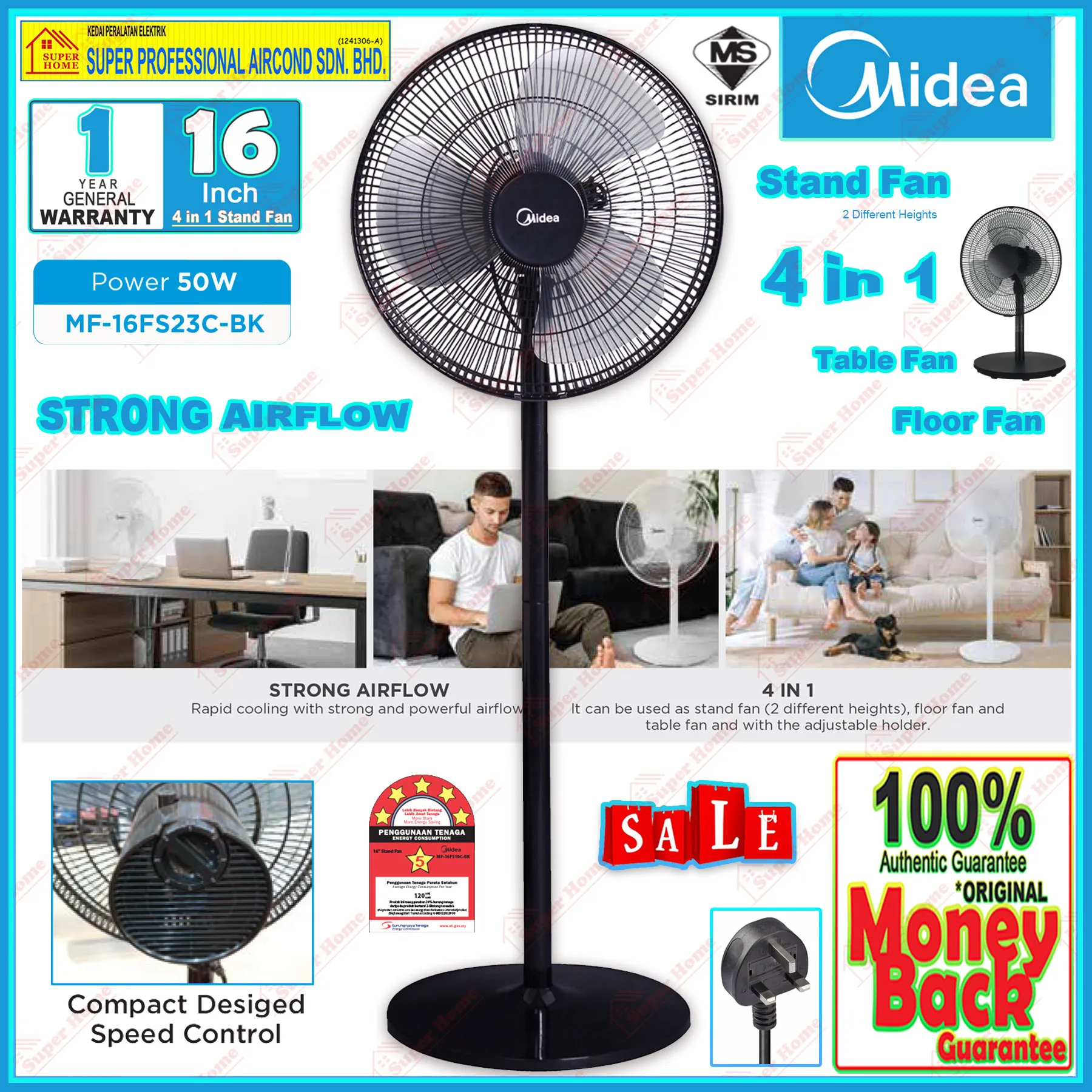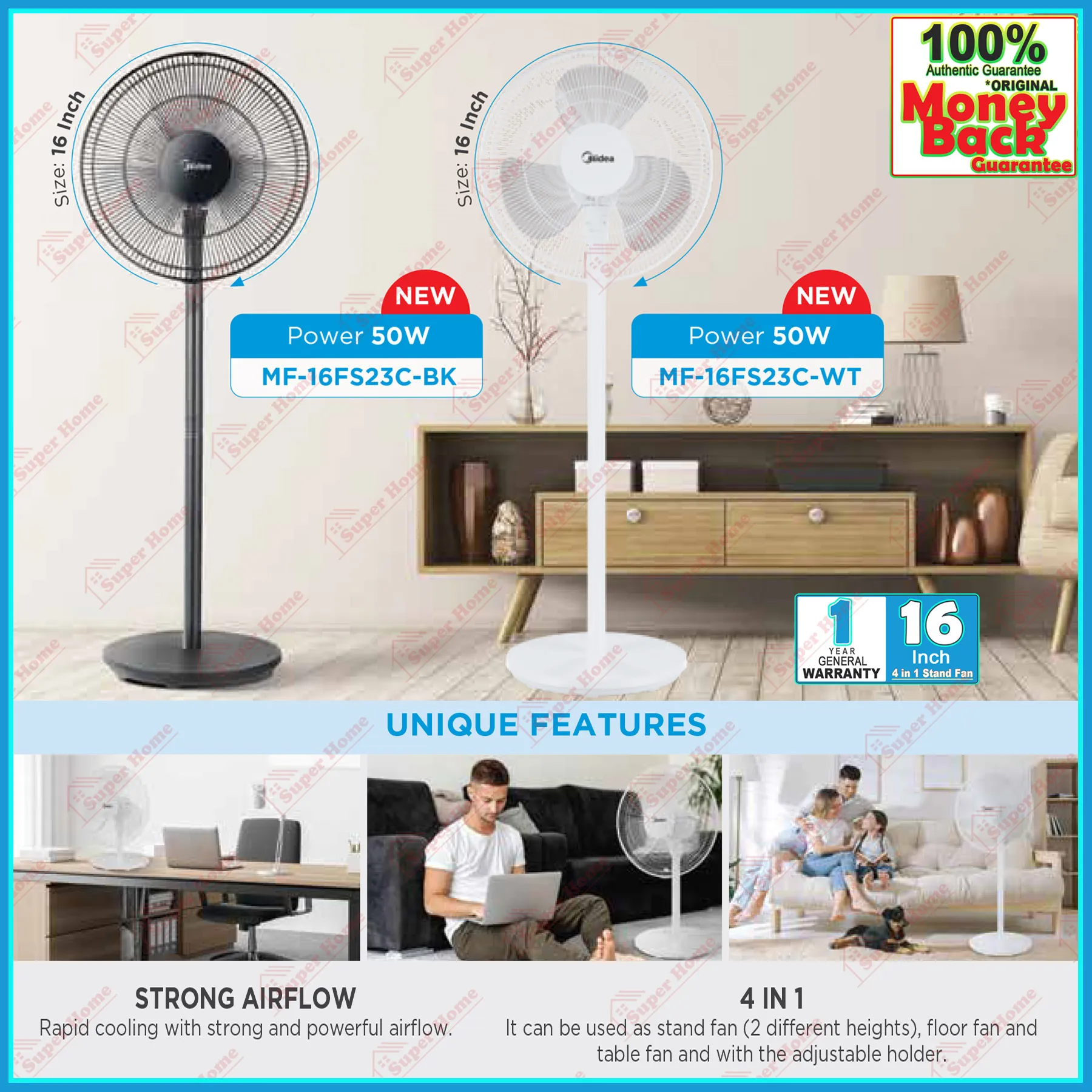 - 4 in 1 can be used as stand fan (2 di erent heights), floor fan and table fan and with the adjustable holder.