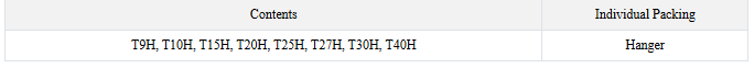 Size: T9H, T10H, T15H, T20H, T25H, T27H, T30H, T40H
