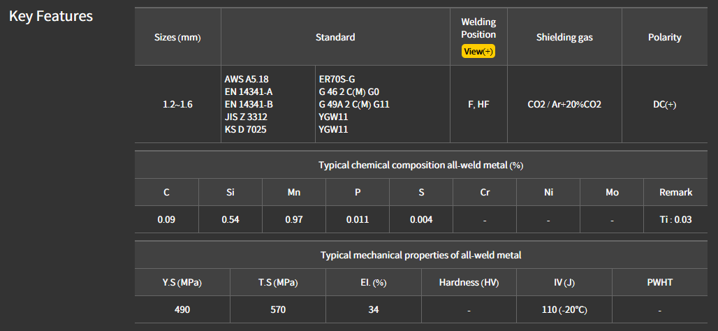 For robot welding of bridges, structural steel, steel buildings.Suited for multi-pass welding due to low slag and easy to remove